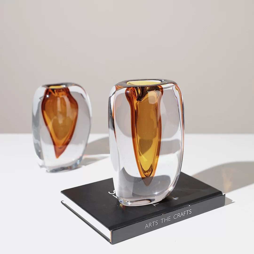 现代家居摆饰玻璃花瓶样板间轻奢摆件餐桌装饰品客厅透明花器插花