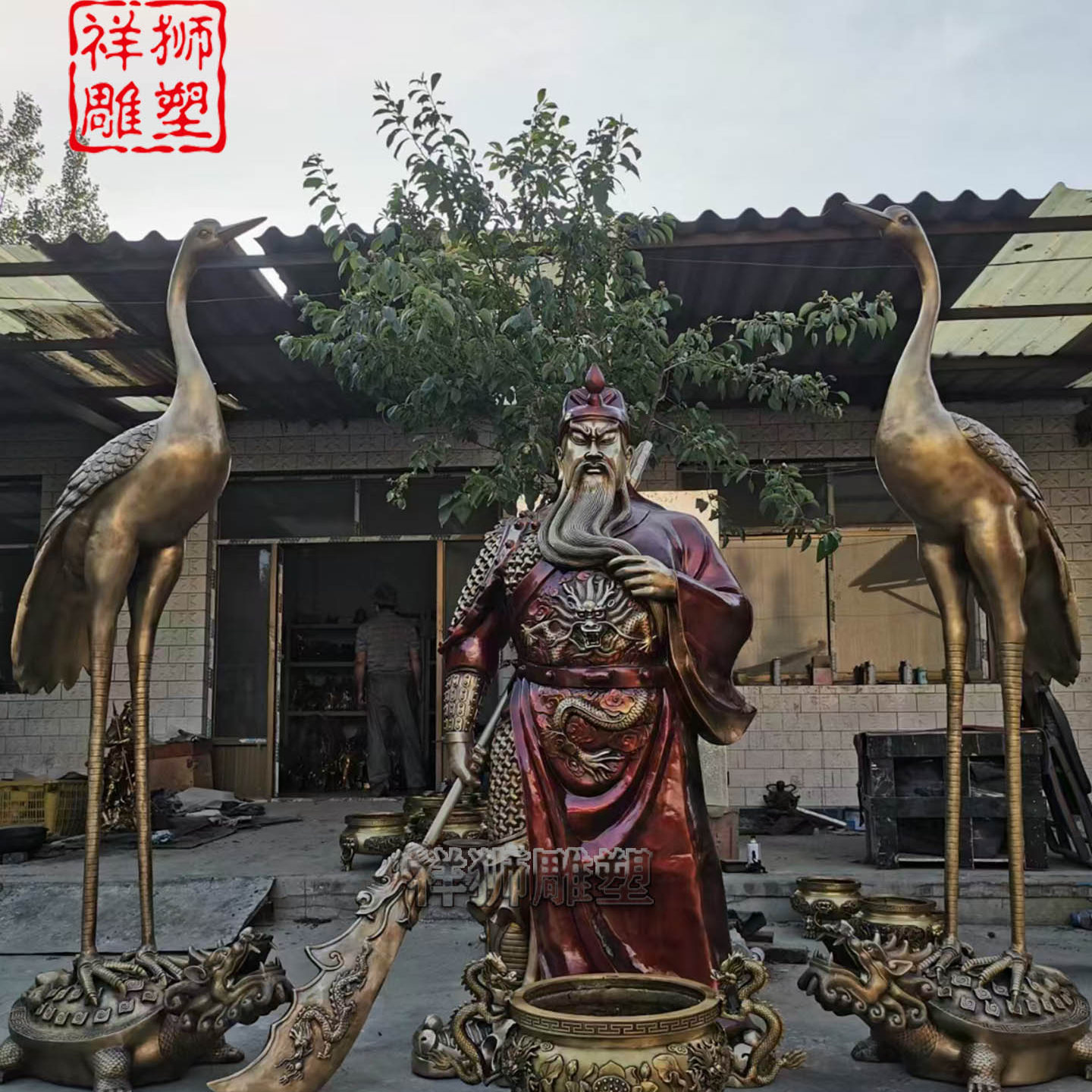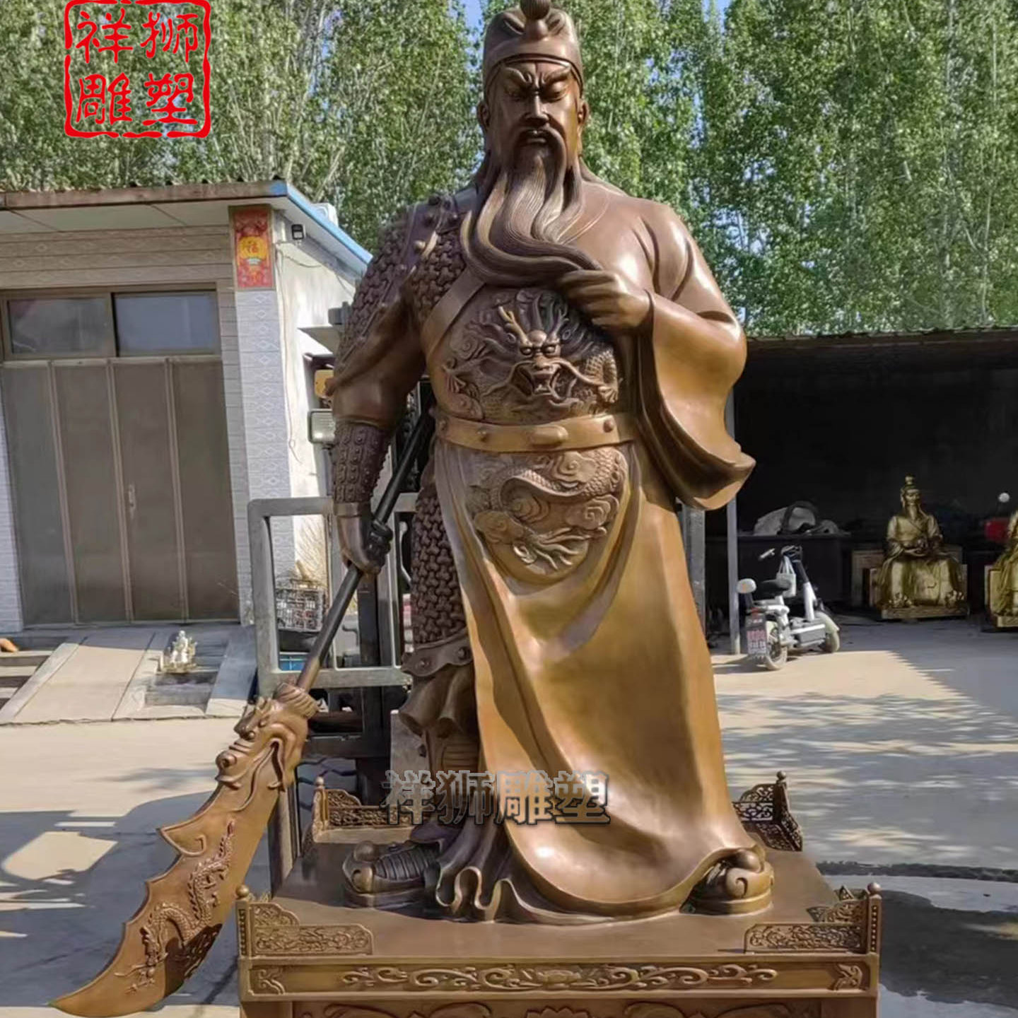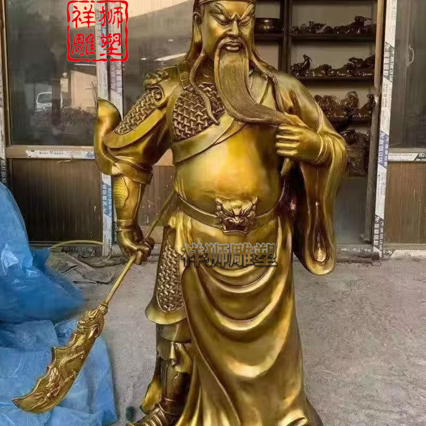 祥狮雕塑黄铜铸造关公佛像大型1米8立刀铜像招财摆件厂家供应精工