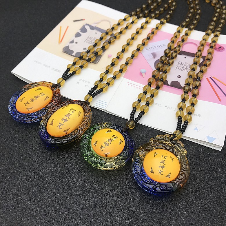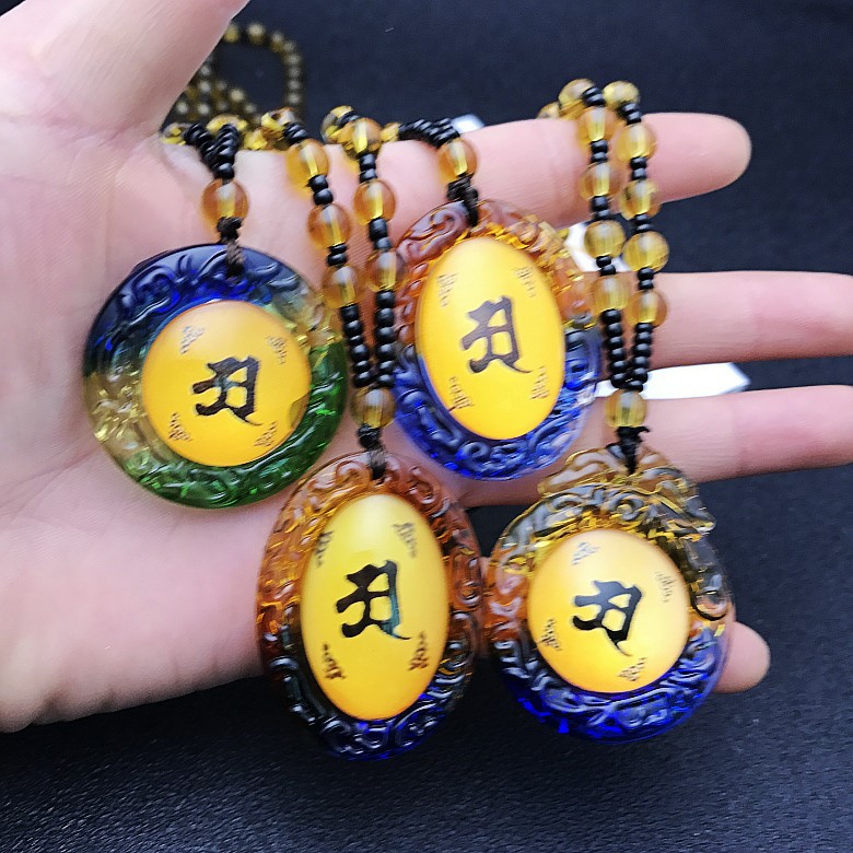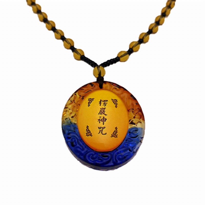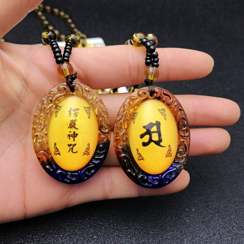 平安挂件黄色圆形琉璃六字真言情侣吊坠