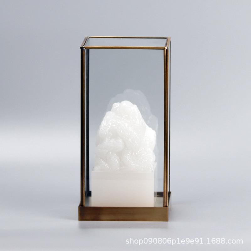 新中式古典树脂仿玉玺玻璃罩组合装饰品软装样板房办公桌书房摆件