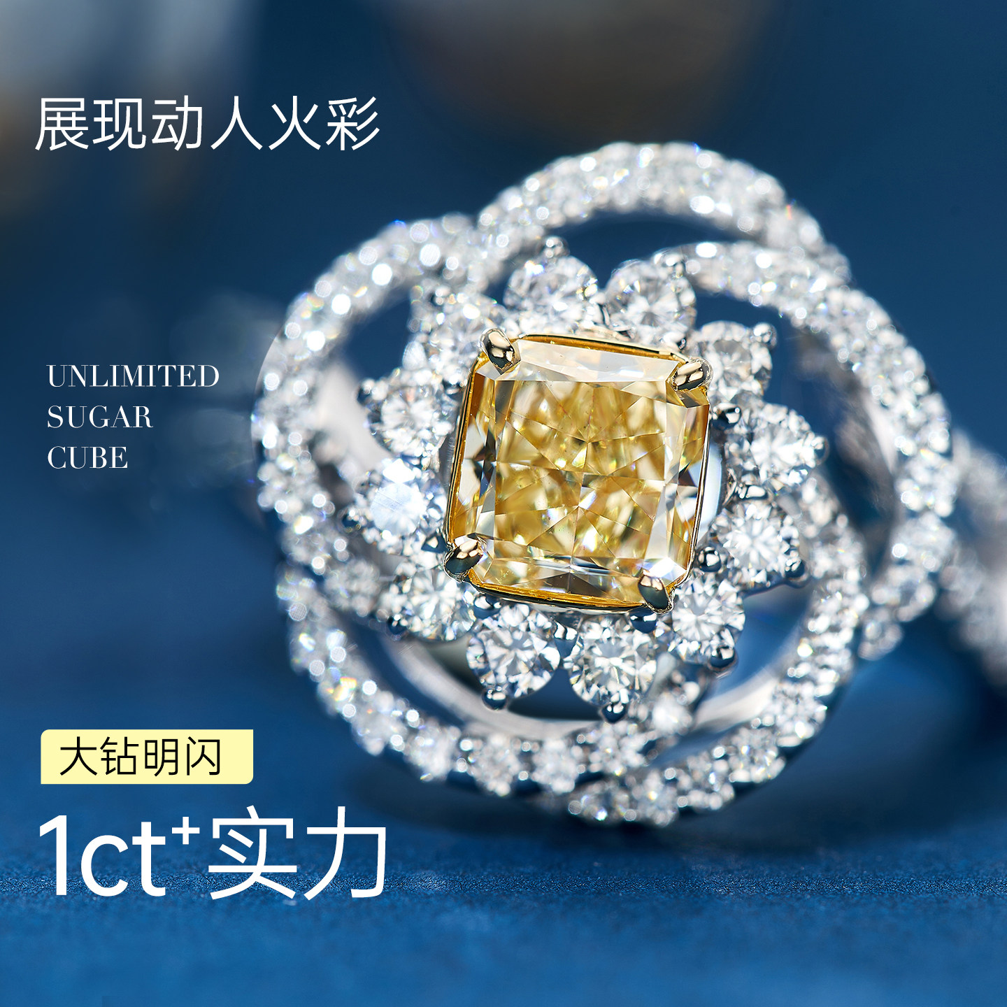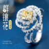 喜钻 白18K金钻石戒指天然真钻克拉群镶女戒镂空山茶花钻戒
