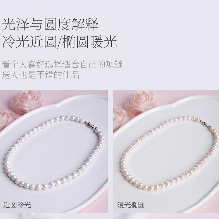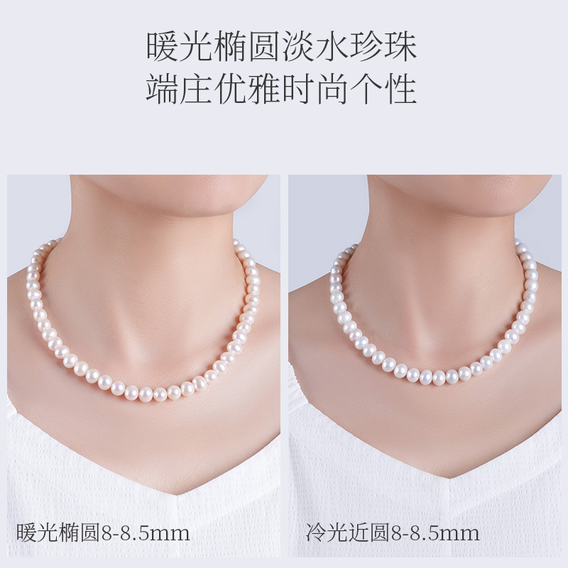 天然淡水珍珠项链8-8.5mm送长辈925银元宝扣可刮粉不掉色不掉皮