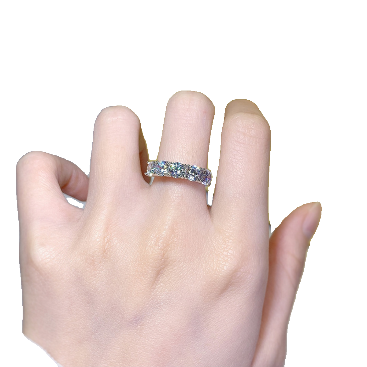 特大号单排钻戒指女大码超闪百搭大颗钻石50分纯银胖妹食指中指