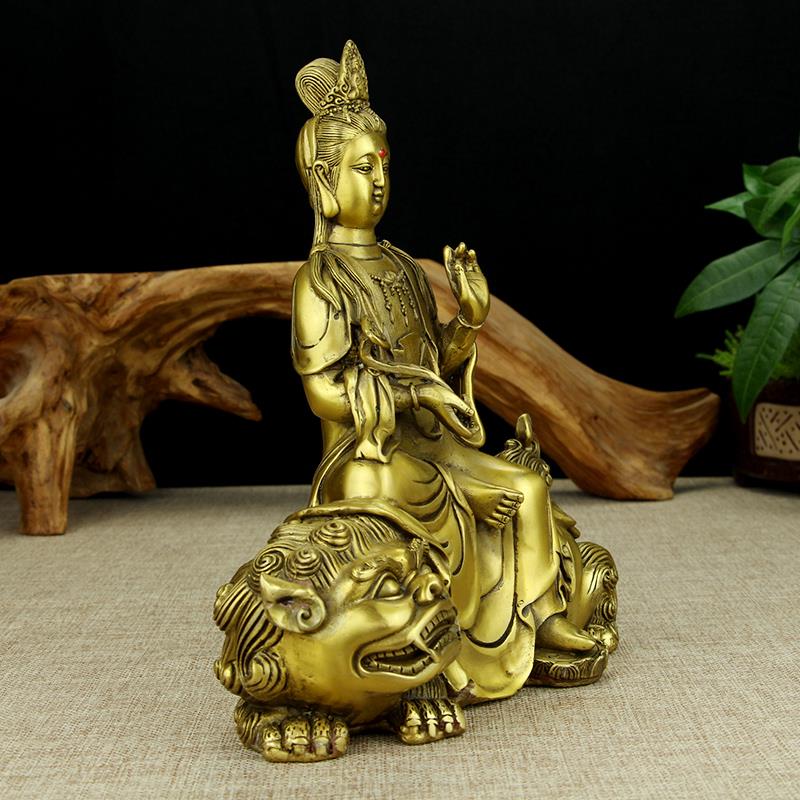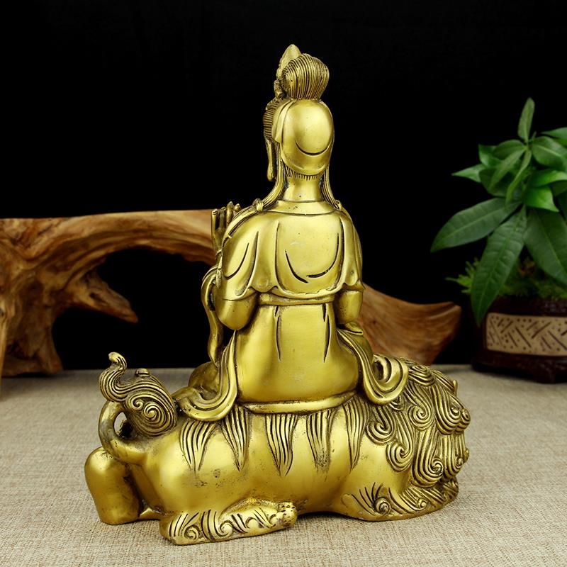 纯黄铜 文殊菩萨佛像摆件 普贤菩萨佛像佛堂桌面供奉车摆件大小号