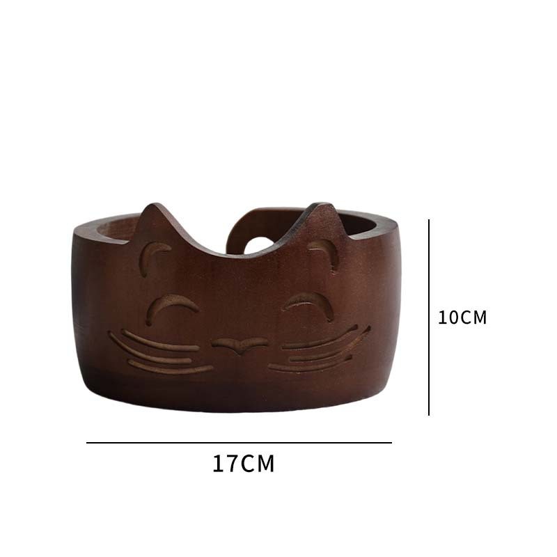 猫款耳木质毛线碗毛线收纳木碗手工纺织木质圆形毛线碗