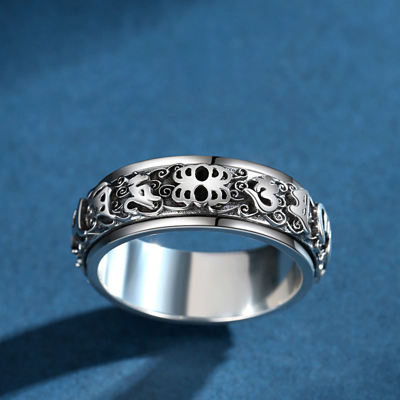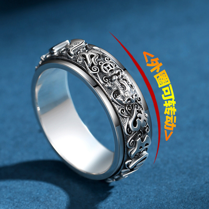 扳指男款大拇指戒指男纯银貔貅潮六字真言转动复古食指情侣女情人