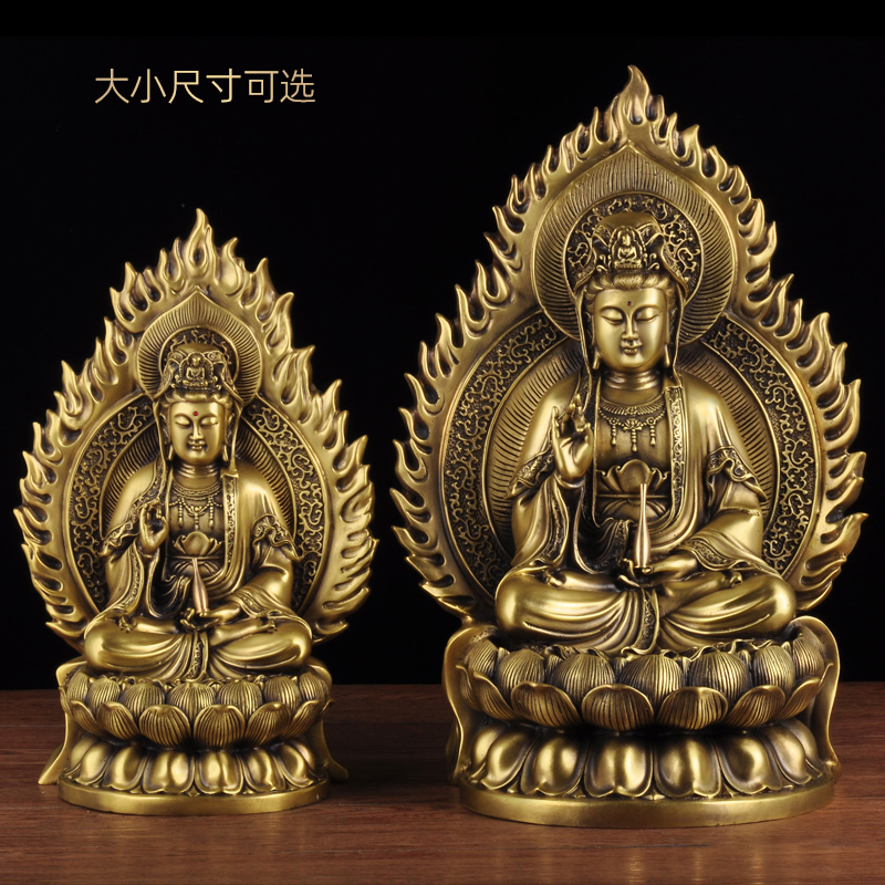 全铜观音摆件带背光观世音菩萨坐莲观音像家用寺庙佛堂供奉工艺品