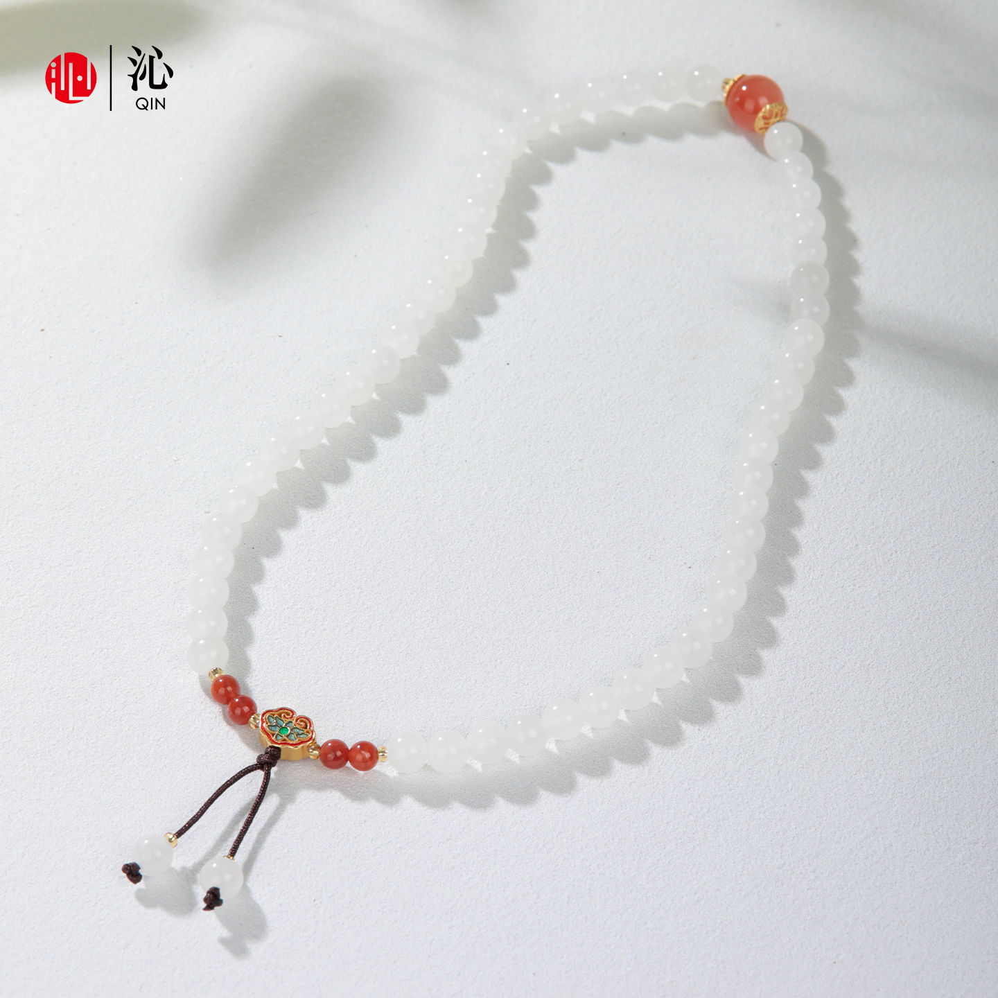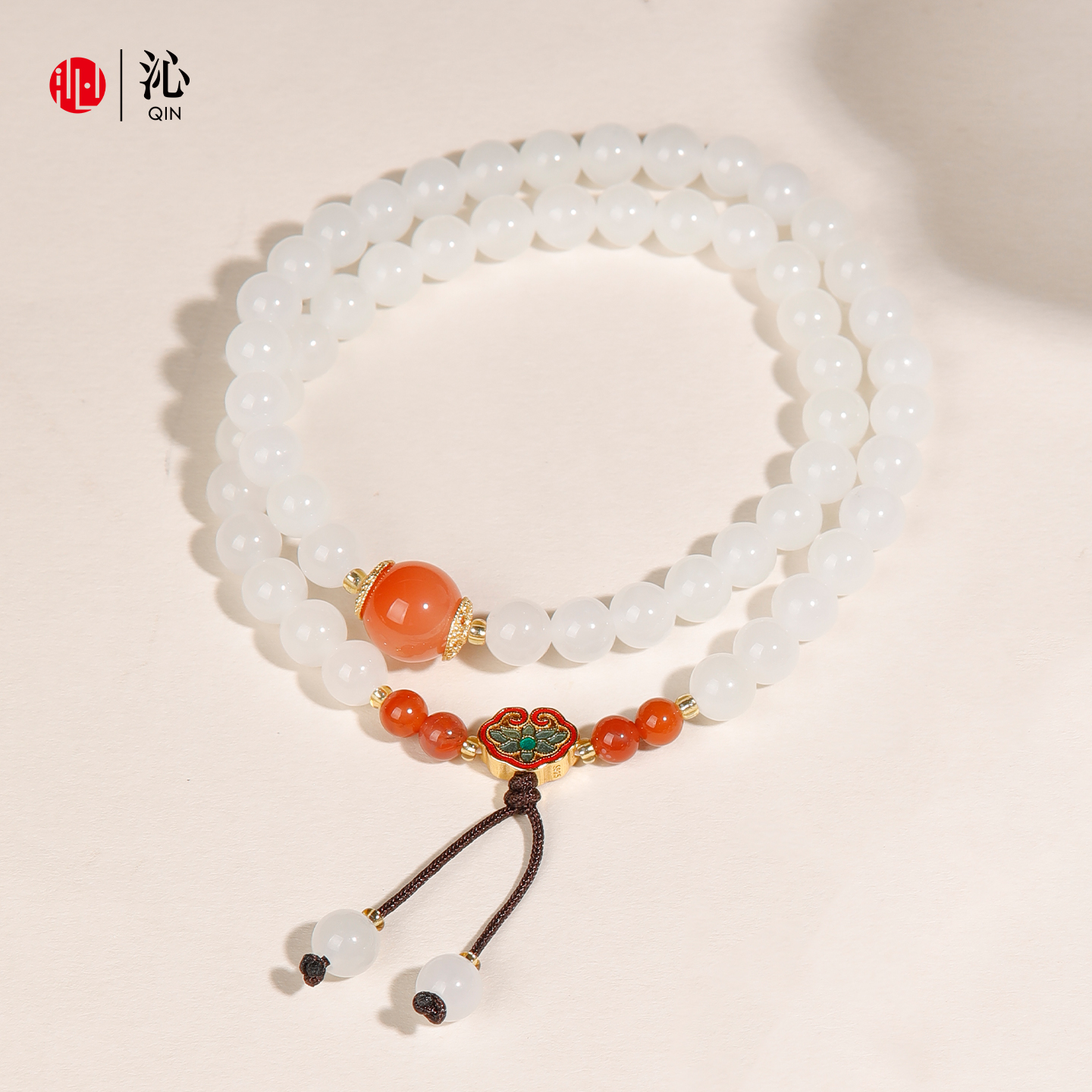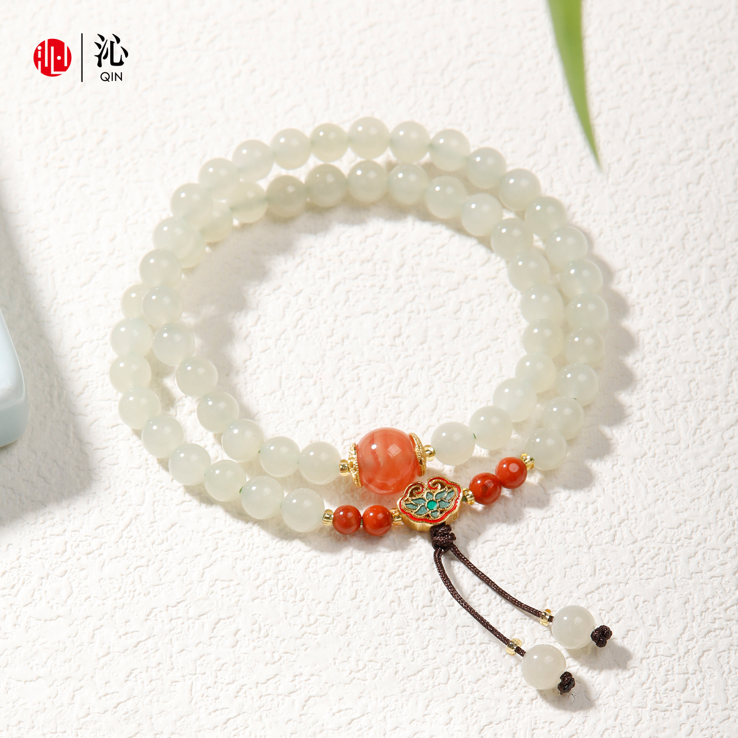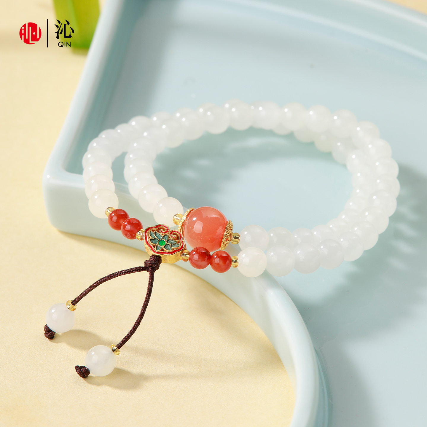 天然和田玉手串女款南红玛瑙真品碧玉晴水双圈手链节日礼物送女生