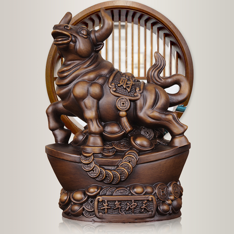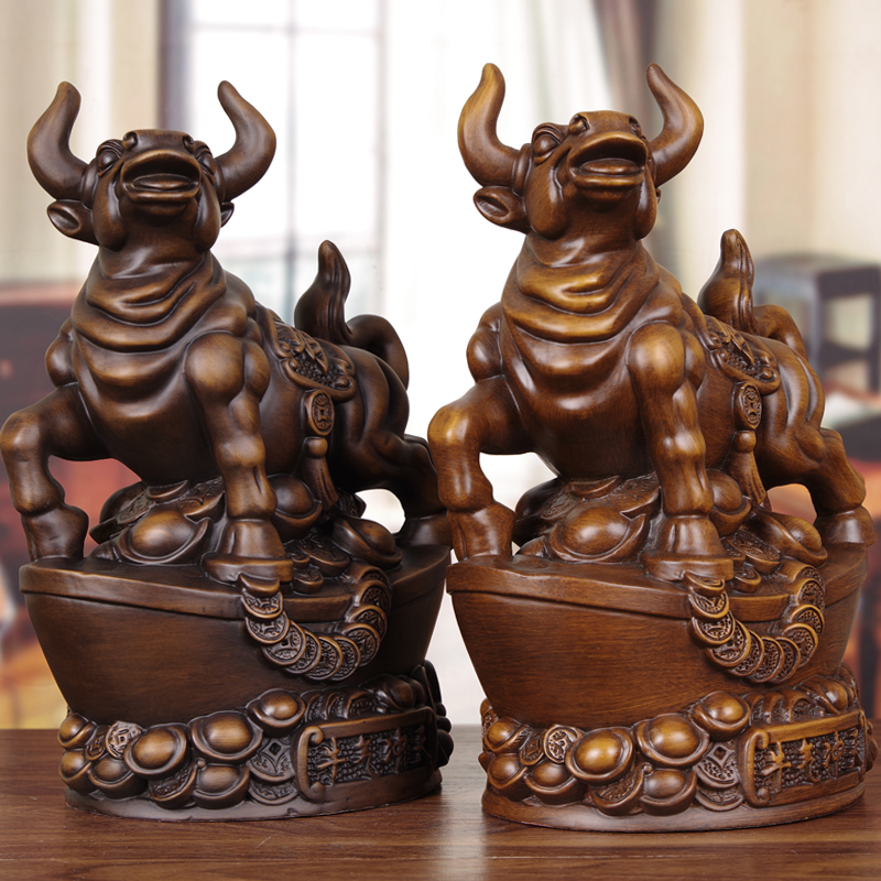 元宝牛气冲天摆件实木雕刻装饰工艺品店铺招财家居办公室桌面摆设