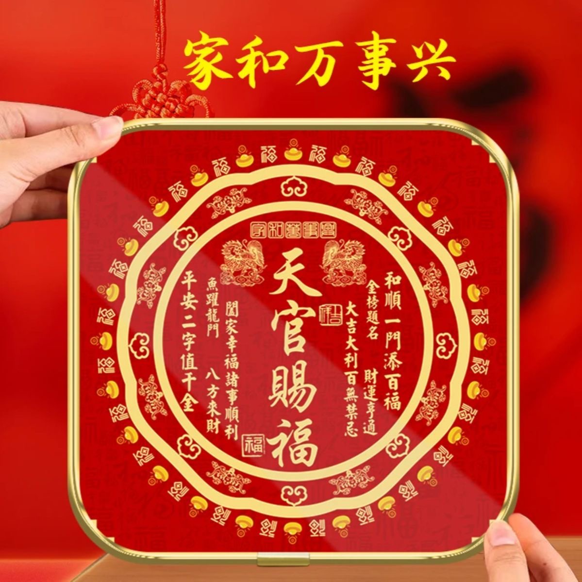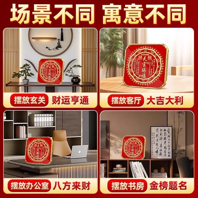 天官赐福摆件新款办公室桌面装饰乔迁玄关柜红色挂画园林摆件摆台