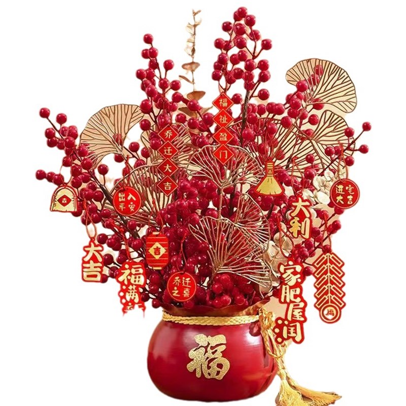 新年福桶装饰摆件2024龙年客厅春节过年乔迁新居之喜发财果年宵花