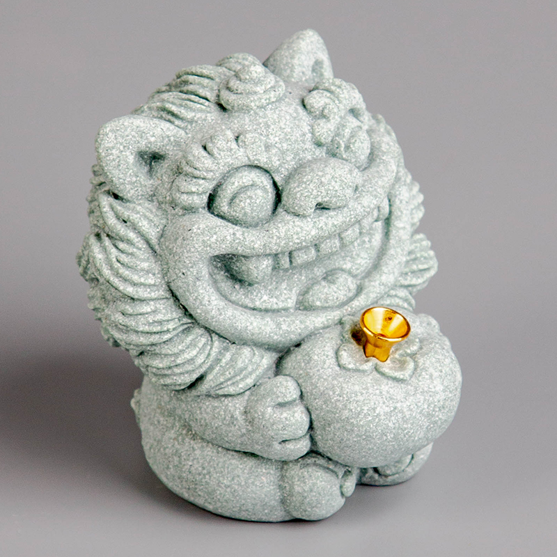 国风青砂石风狮爷开心喵线香插香座摆件创意办公室桌面装饰薰香炉