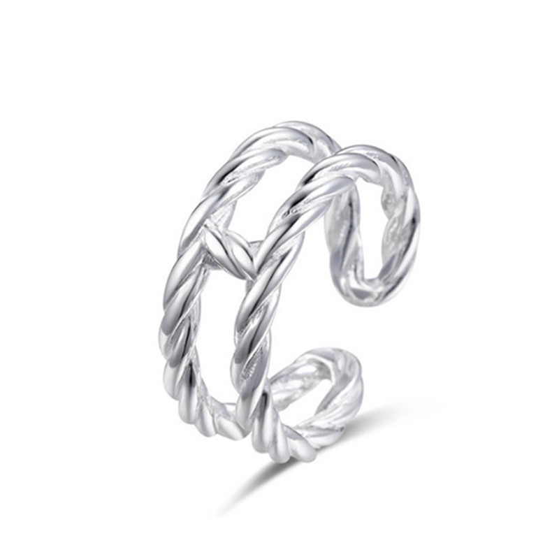2025年爆款S925纯银镀18K金H字母双层圆圈珍珠夸张个性女食指戒指