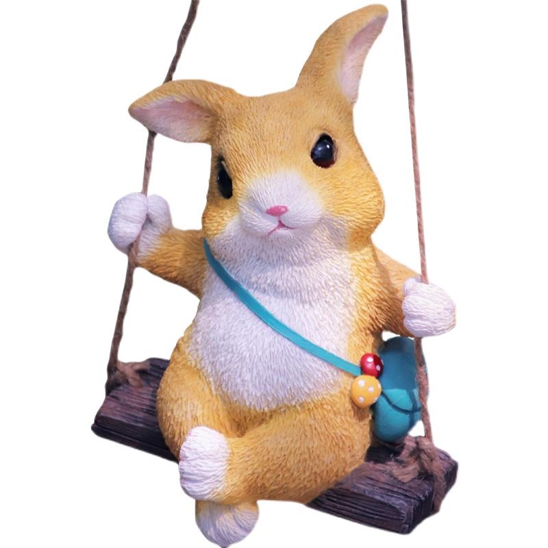 创意动物可爱卡通小兔子秋千摆件庭院户外花园阳台树上装饰挂件