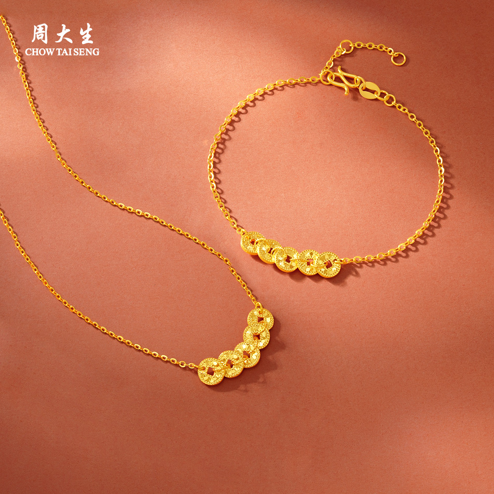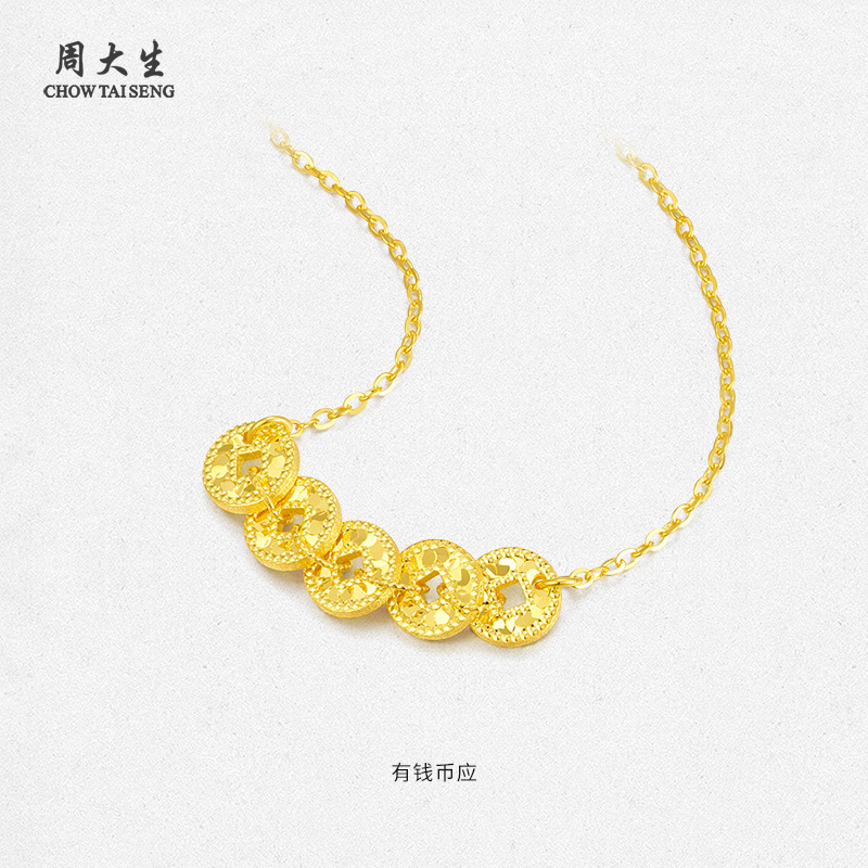 周大生五帝币黄金项链足金手链碎碎冰铜钱套链吊坠圣诞礼物送女生