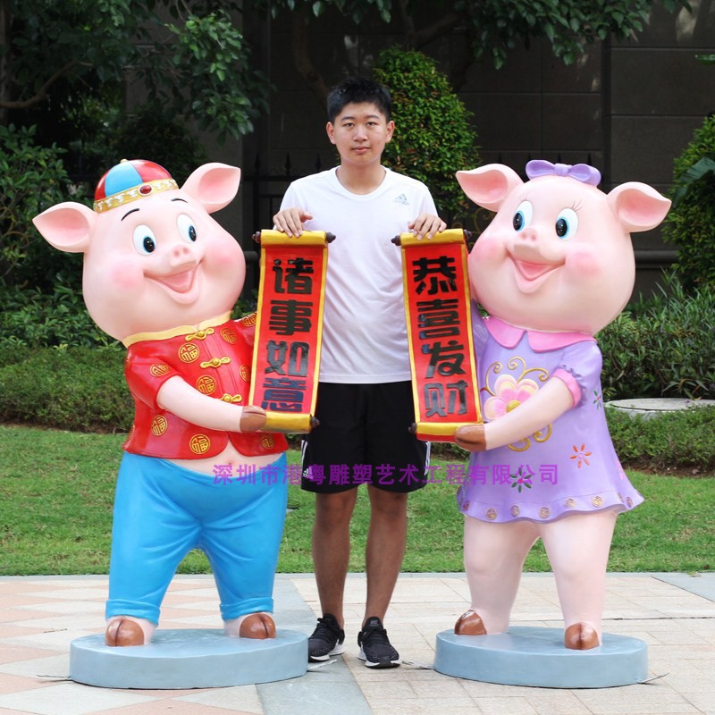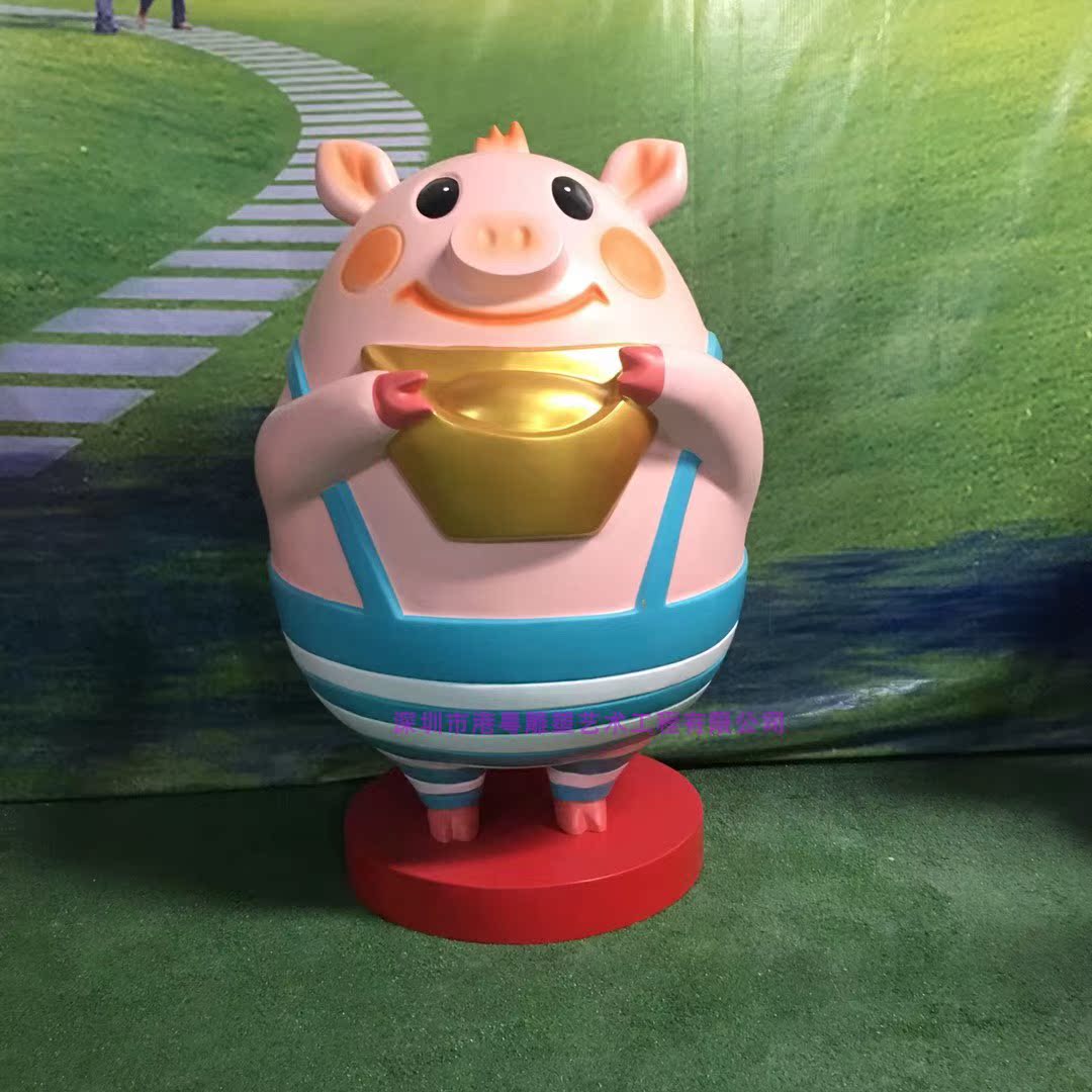 猪年吉祥物2019新款卡通福运猪大眼萌公仔动漫制作玻璃纤维卡通猪