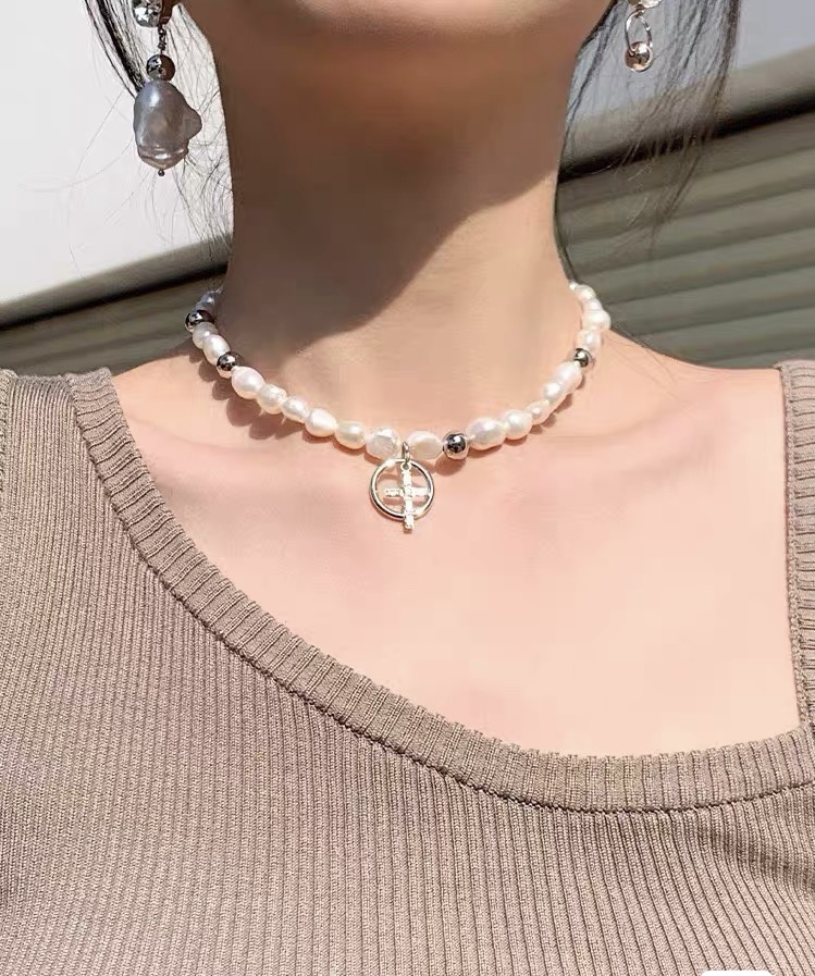 Justine项链女jennie同款小众设计款十字架珍珠锁骨链mona同款