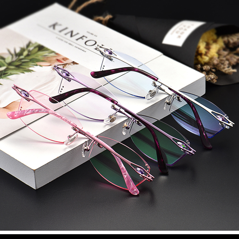 配近视眼镜 女 有度数成品 无框眼镜 眼镜架 近视镜女纯钛超轻