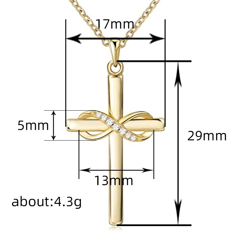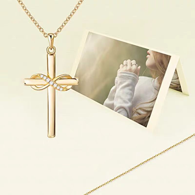 8字光面信主十字架高级感吊坠项链欧美信仰镶钻锆石锁骨链黄金色