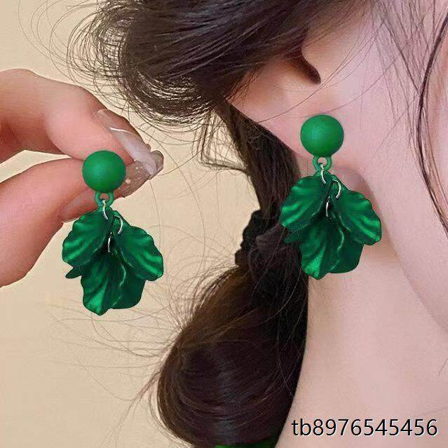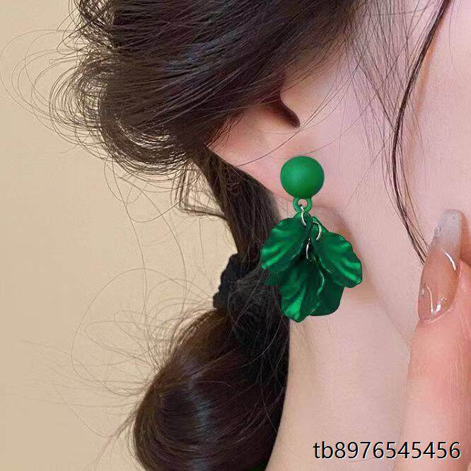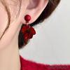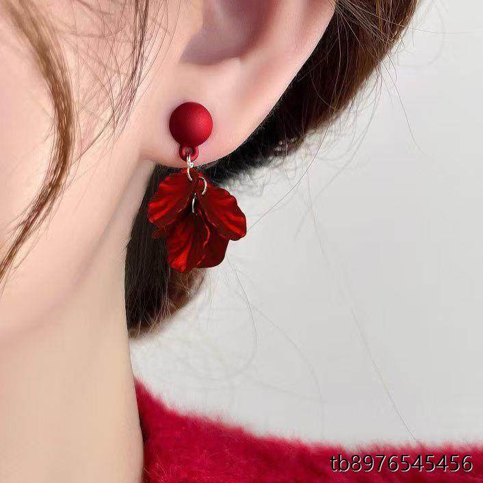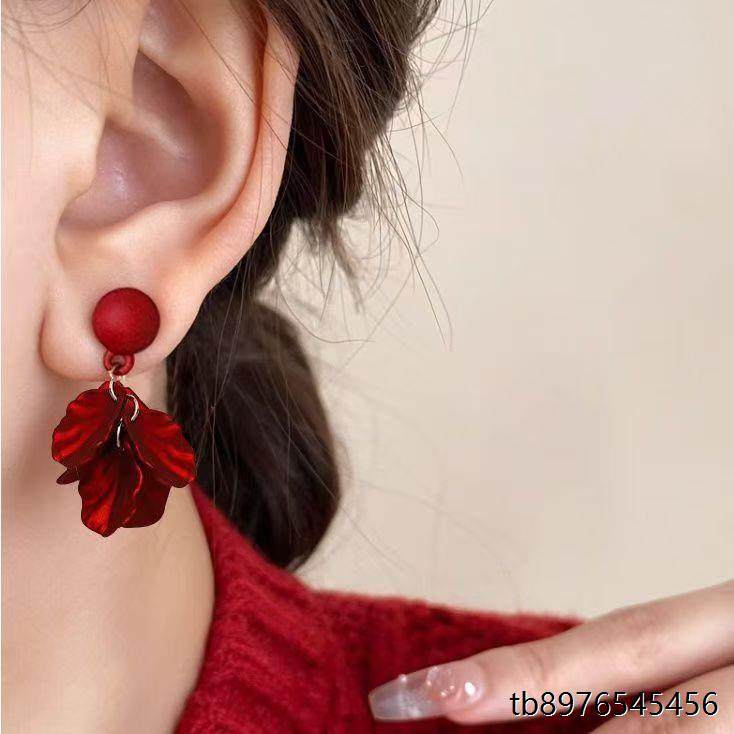 红色超仙花瓣耳环耳饰高级复古气质玫瑰耳钉网红中国风高级感洋气