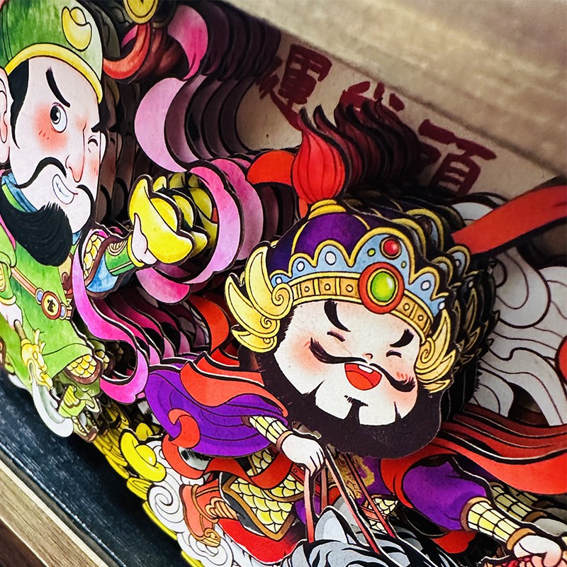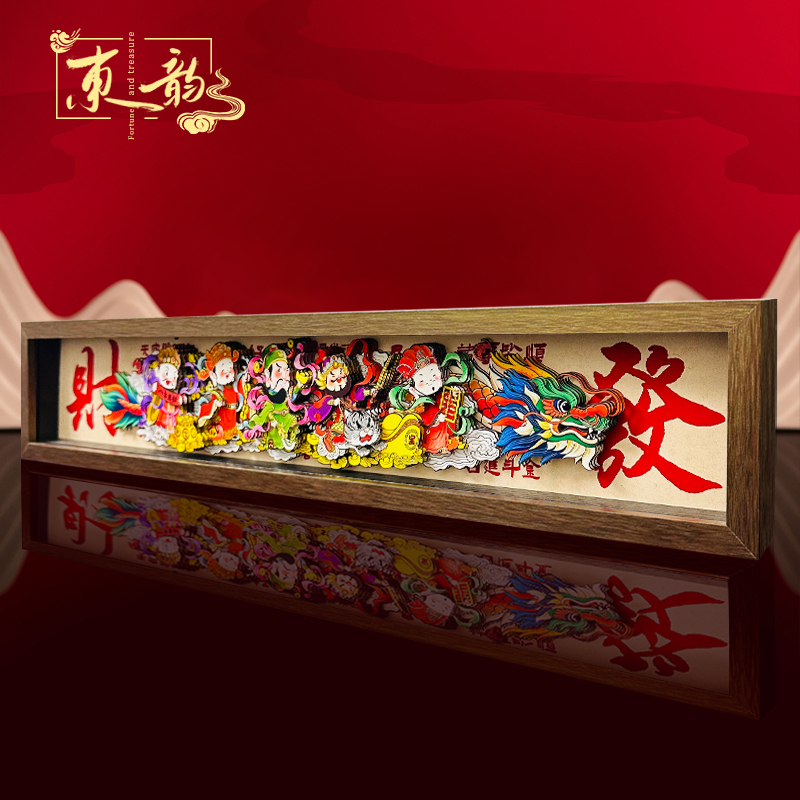 五路财神开业礼物桌面摆件新家乔迁非遗剪纸招财工艺品文创装饰品