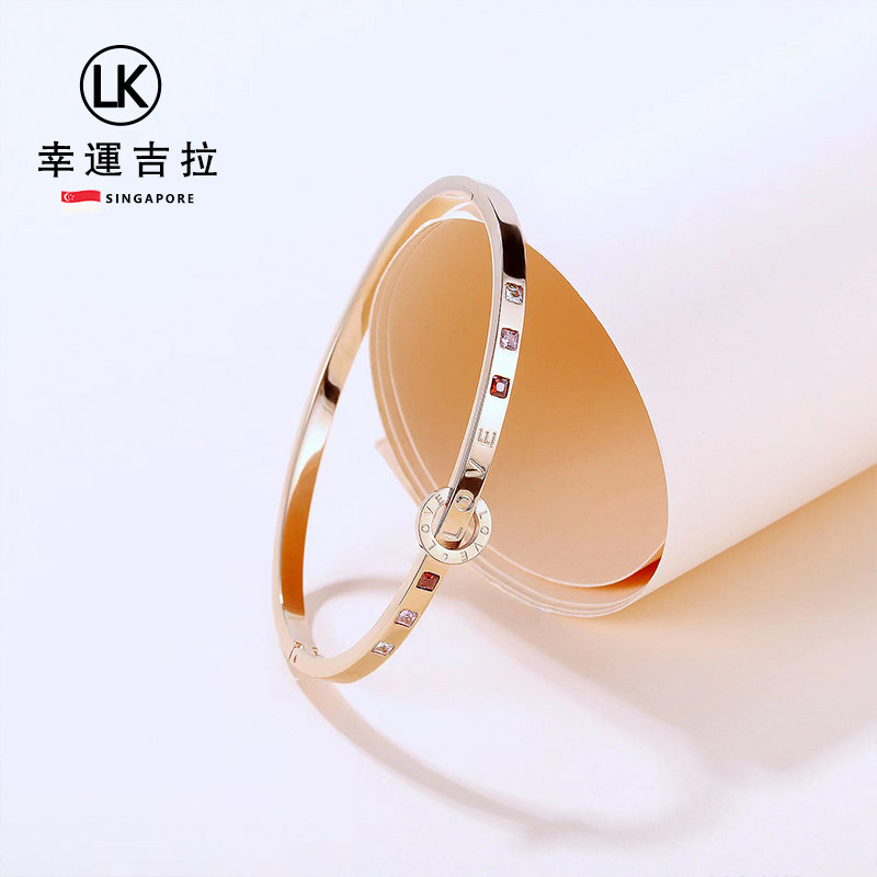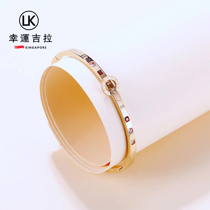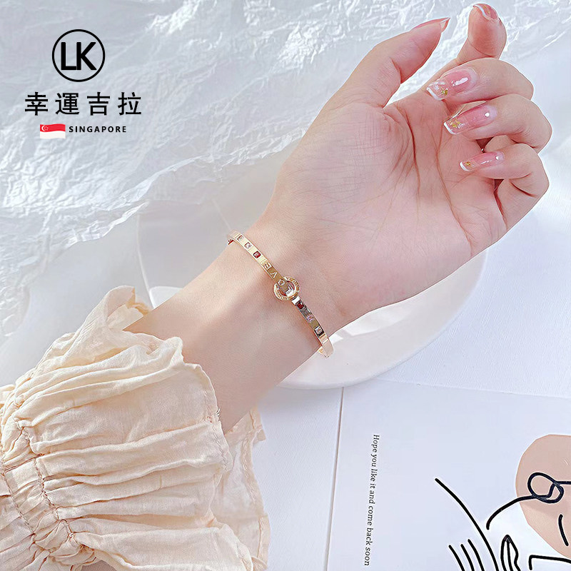 【跨境ins】新加坡设计师18K镀金手镯欧美LOVE字母玫瑰金轻奢款细
