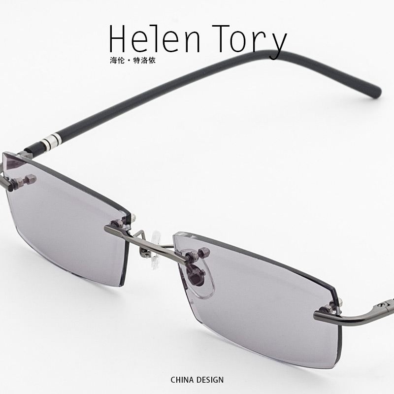 变色钻石切边 无框 钻石切边近视眼镜 钛合金水晶切边眼镜 男款