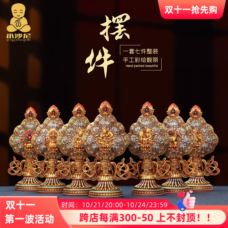 树脂轮王七政宝金轮宝家居桌面装饰摩尼宝七珍宝家用佛堂供具摆件