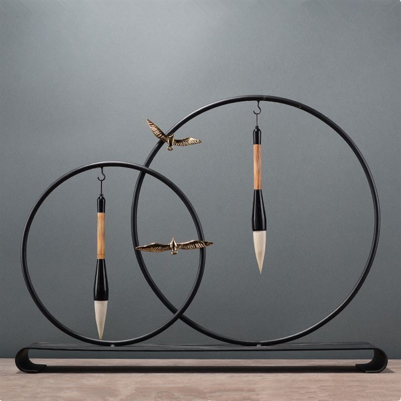 新中式创意毛笔架摆件样板房办公桌面家居书房软装饰客厅玄关摆设