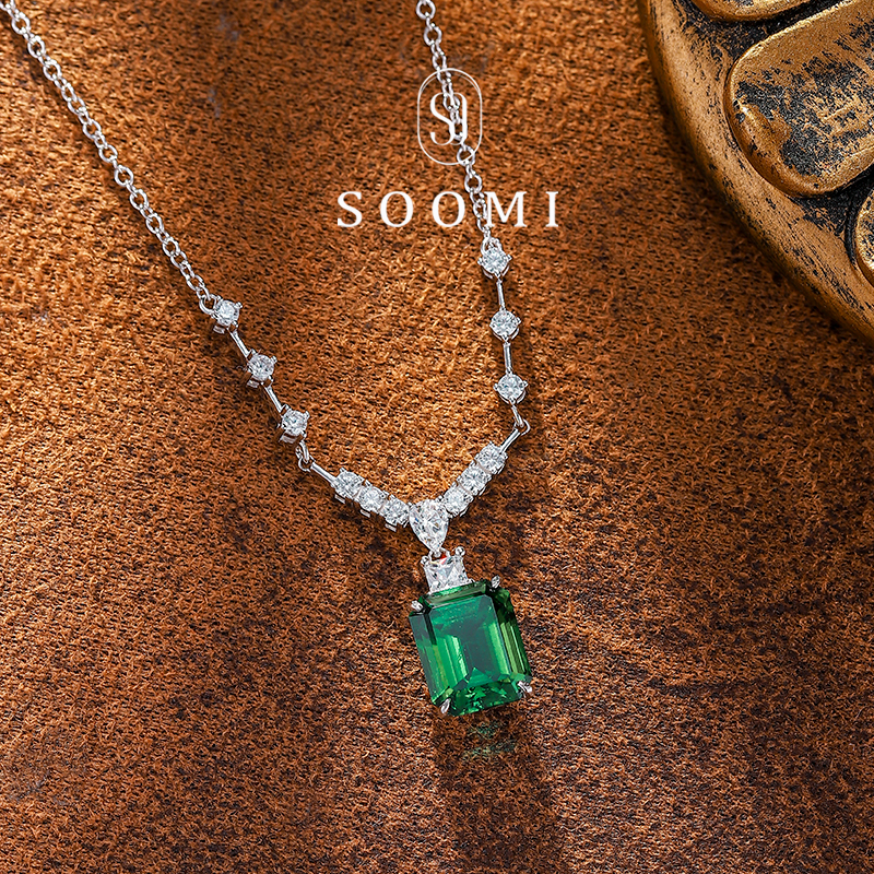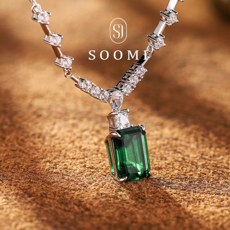 【SOOMI 森屿】3.2克拉实验室培育祖母绿宝石项链时尚设计吊坠女