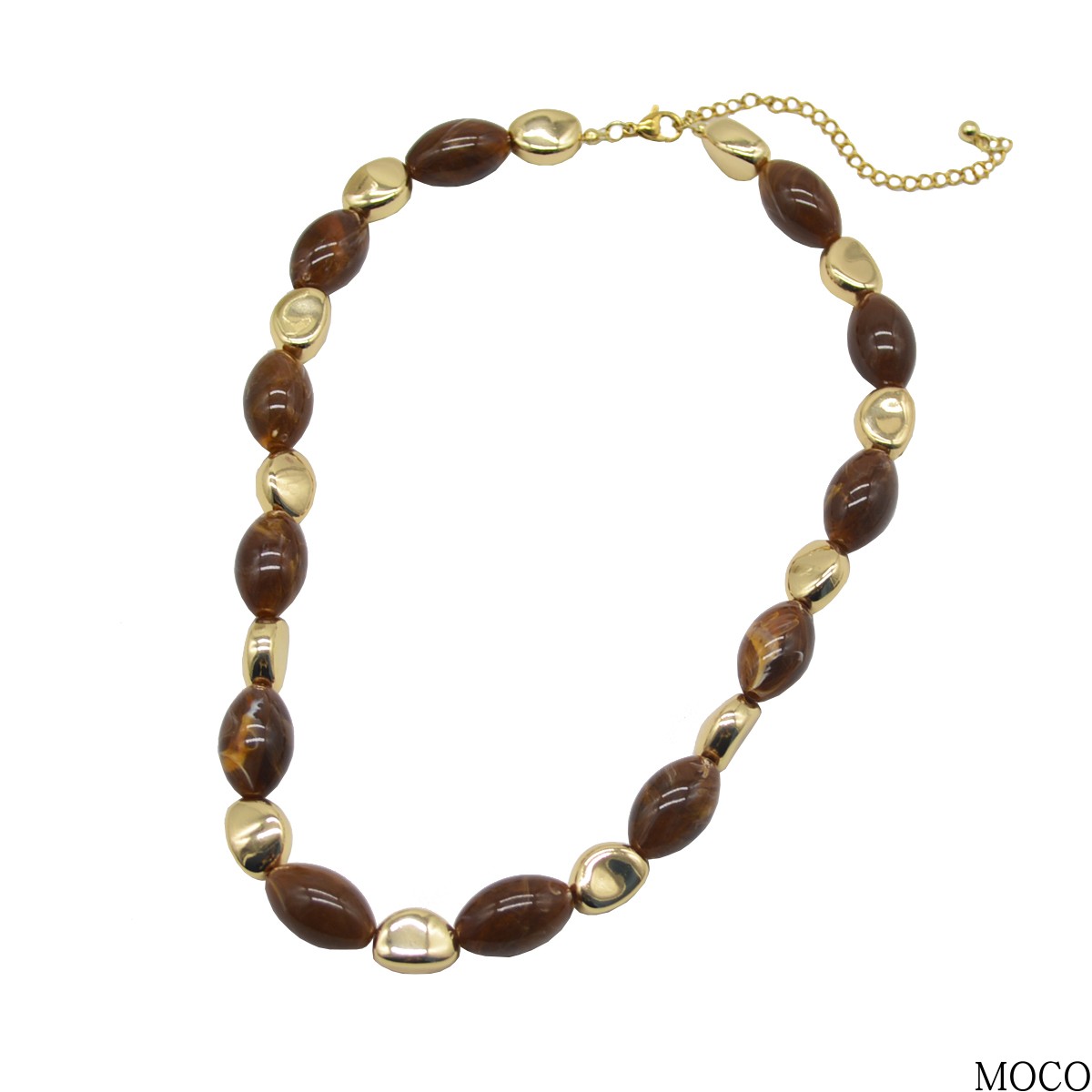 美拉德风椭圆树脂几何项链法式复古串珠毛衣链气质高级感小众颈链