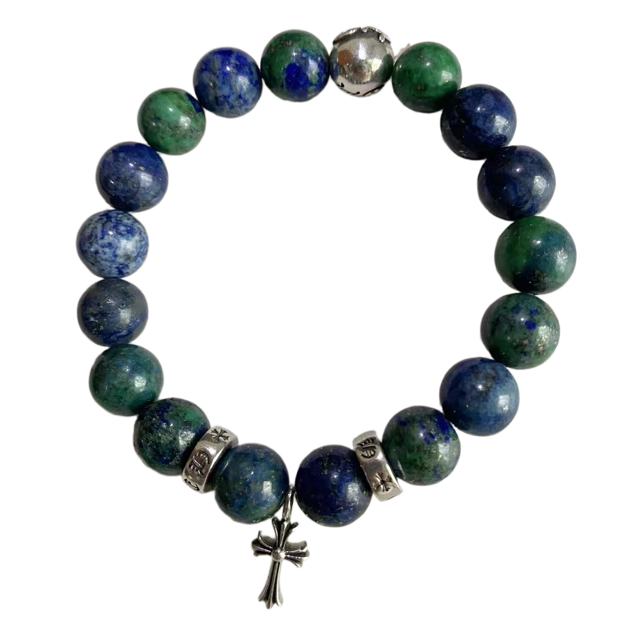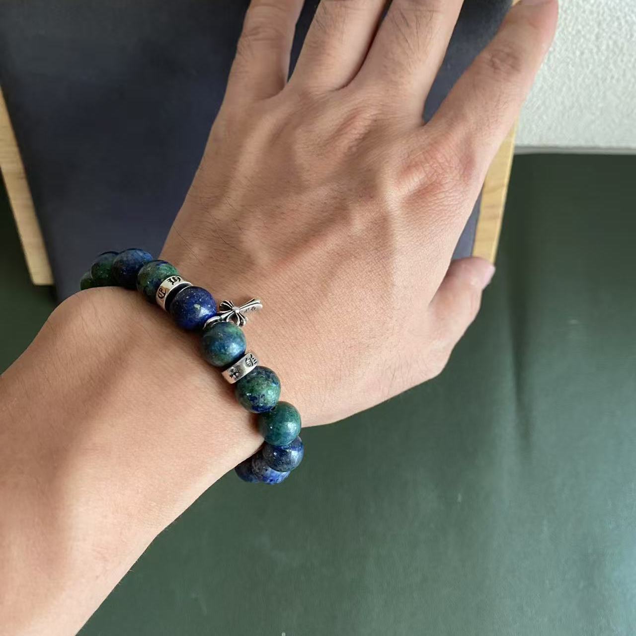 泰银凤凰青金石十字架手串时尚镀S925纯银符文珠手钏暗黑潮手链潮