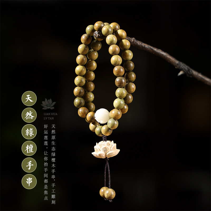 奶香绿檀木手串女学生绕指柔好运莲花文玩佛珠单圈国潮文艺手串