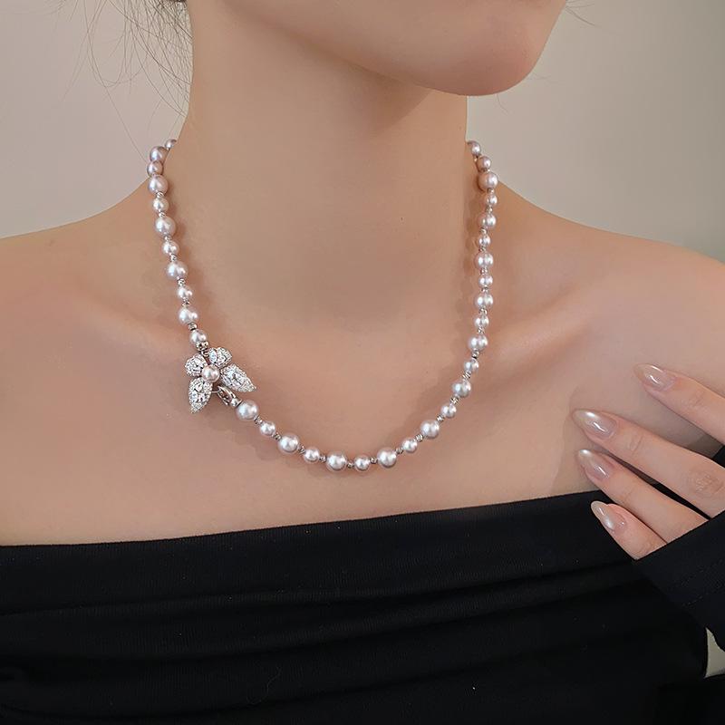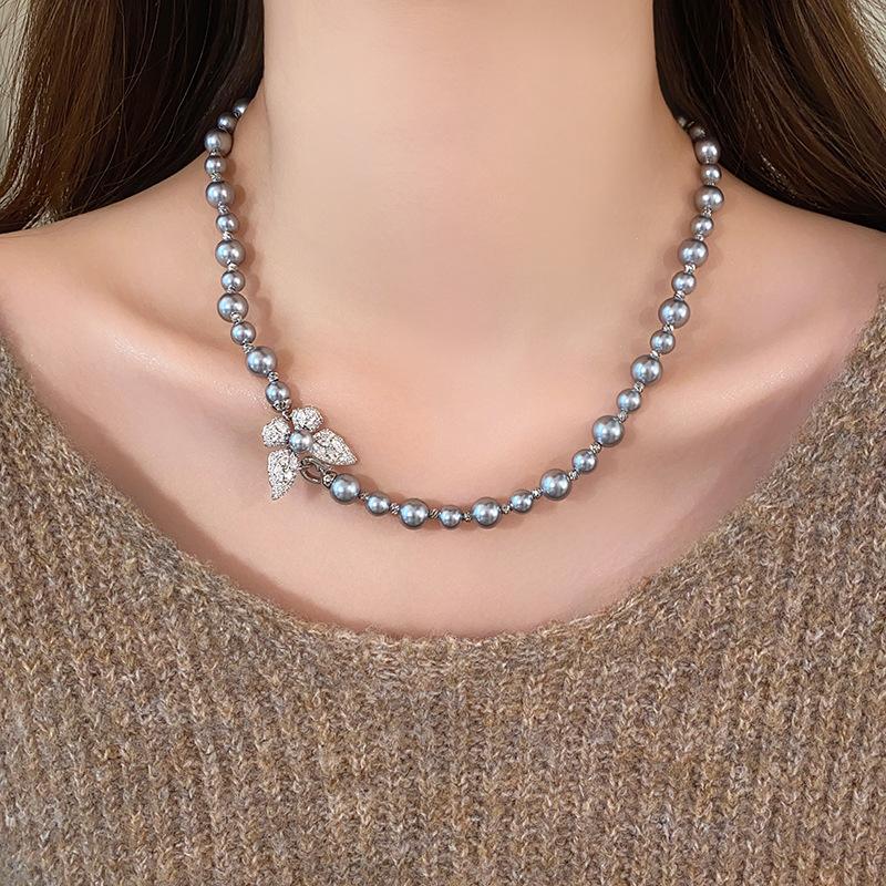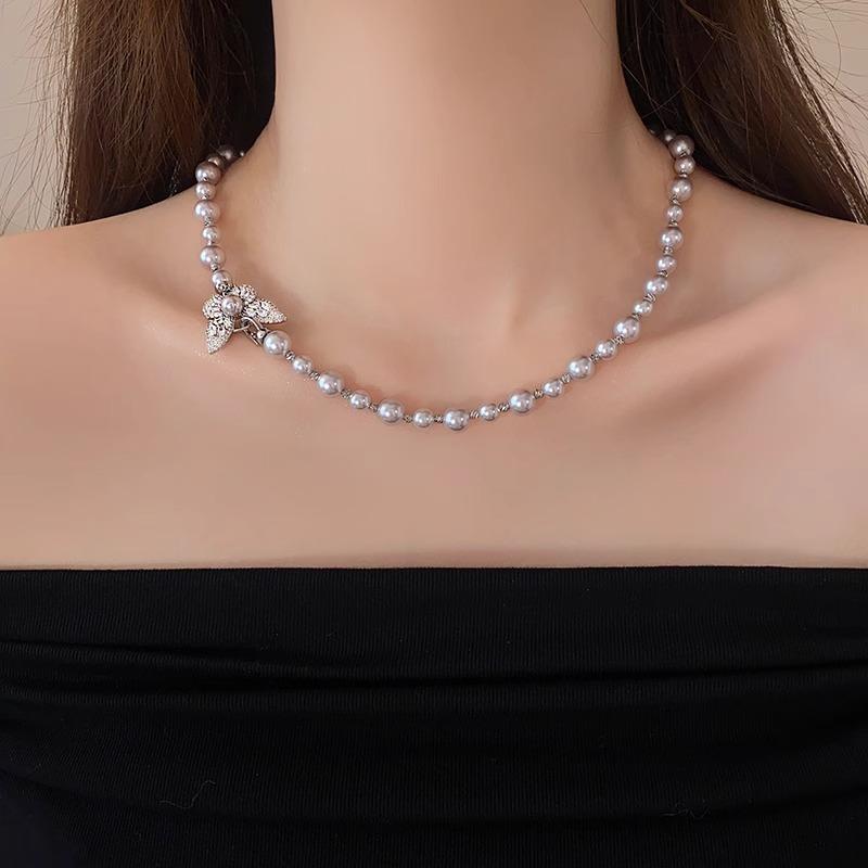 小众蝴蝶施家珍珠毛衣项链女款秋冬配饰精致毛衣链百搭气质锁骨链