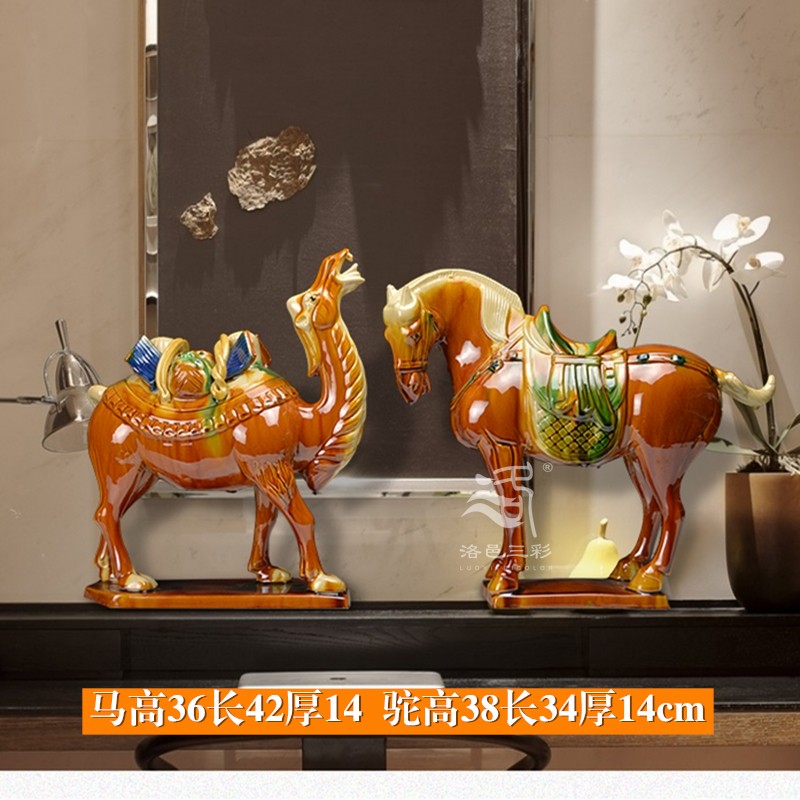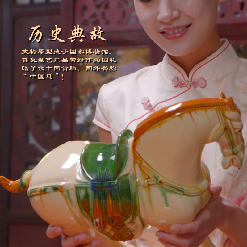博物馆中国马唐三彩大马中式客厅玄关装饰电视柜摆U件陶瓷工艺礼