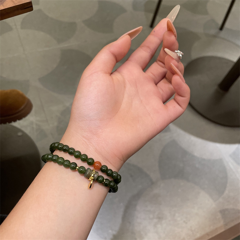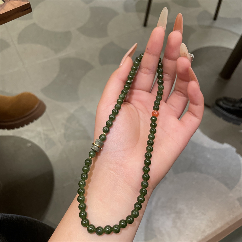 天然和田玉竹节多宝手链国风碧玉圆珠手串小众百搭玉石手饰礼物