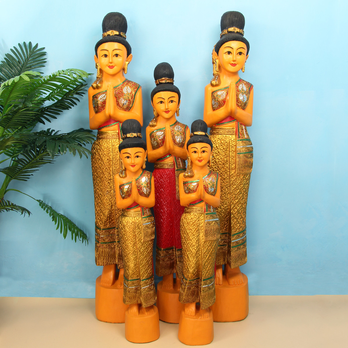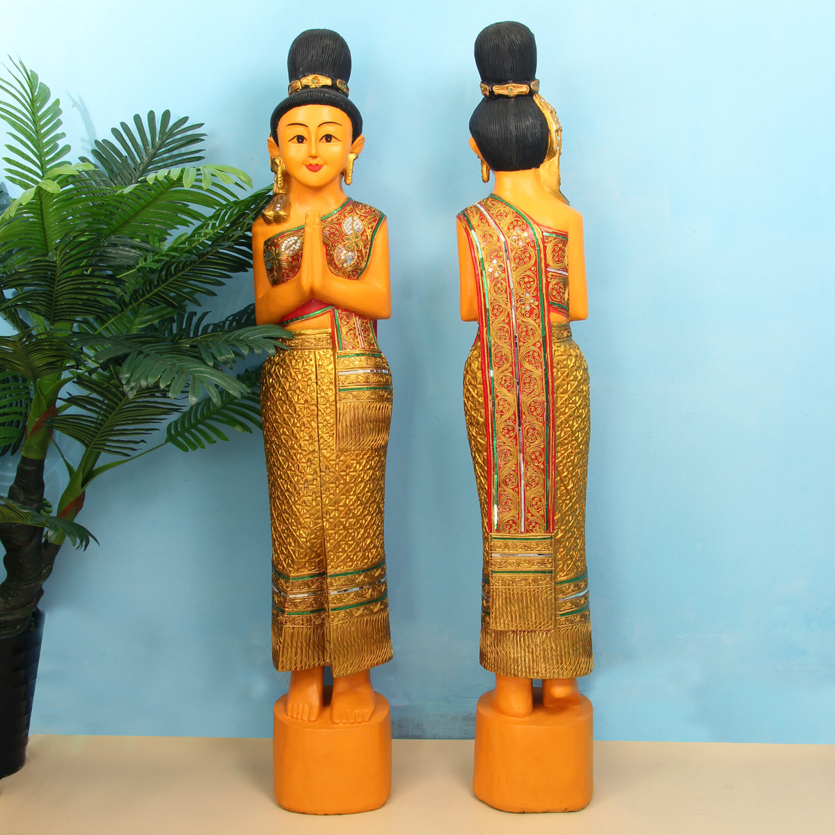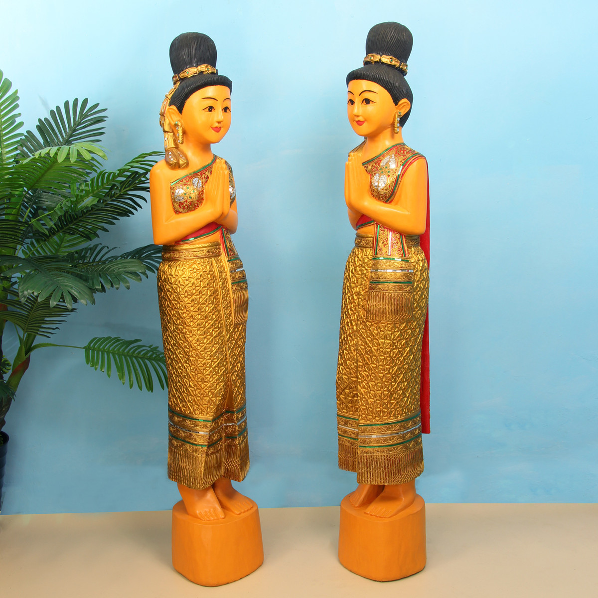 泰国迎宾侍女摆件东南亚风格装饰品泰式木雕人偶餐厅门口落地摆件