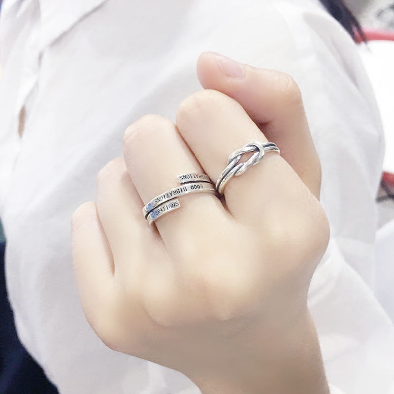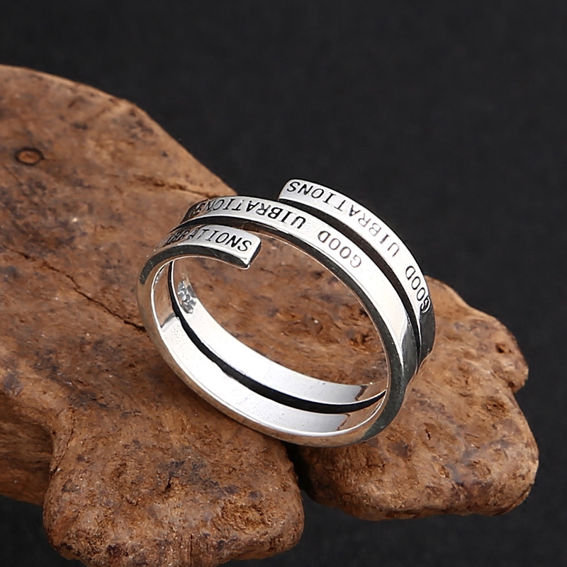 富贵鹿韩版绕圈戒指女 纯银s925英文刻字开口食指环 甜美简约礼物