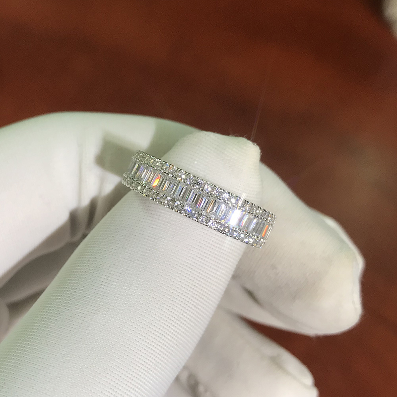 卓蝶珠宝 T梯方钻石戒指仿钻石满镶钻排戒t方戒指排戒情侣对戒
