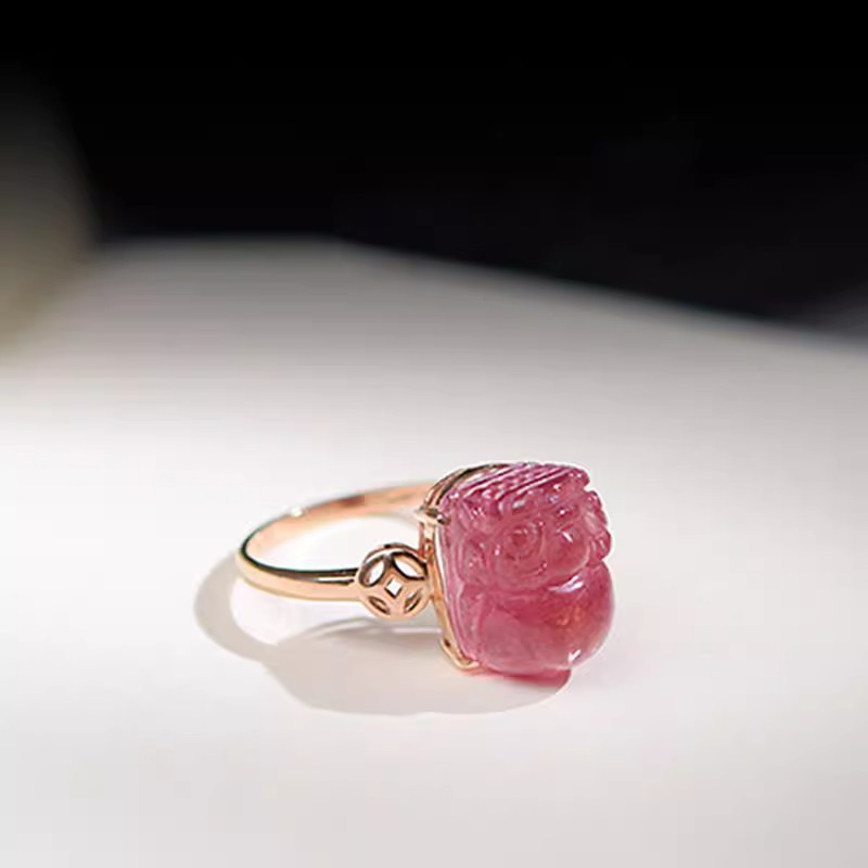 彩虹草莓晶貔貅戒指女精致精美高级感轻奢设计超显白指环食指