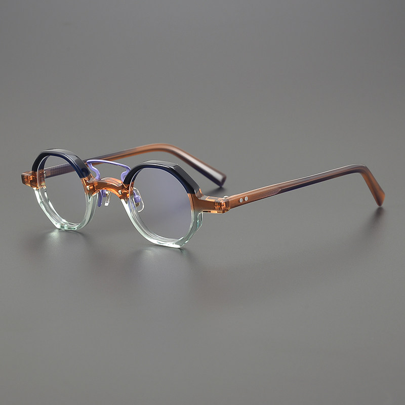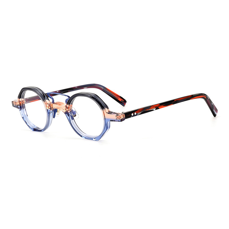 设计师蓝玳瑁色 日本手造不规则圆板材眼镜框复古男女高度数小脸
