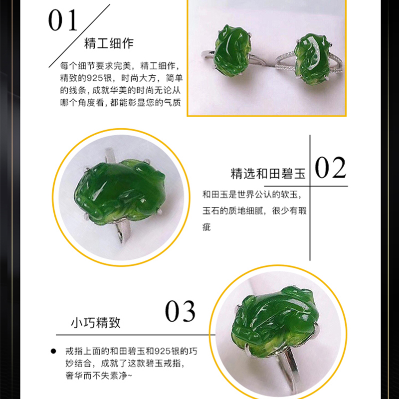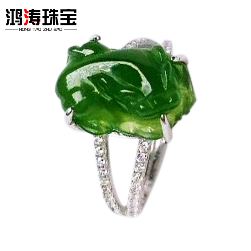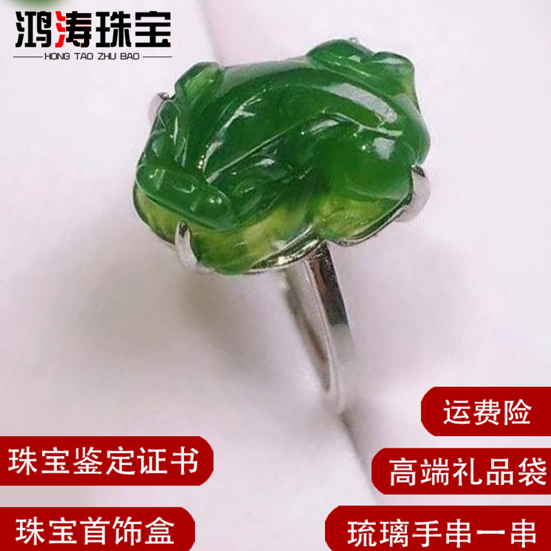 和田玉碧玉貔貅戒指女食指戒S925银镶绿宝石开口戒指环男招财戒子