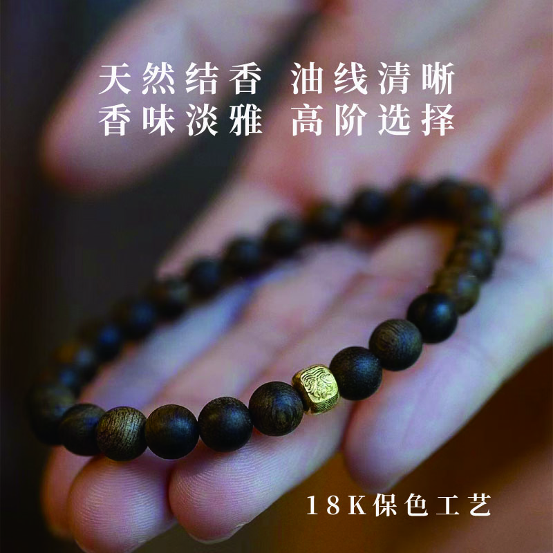 奇楠沉香五条经文高级感扎基拉姆高端新中式转运招财沉香手链编织