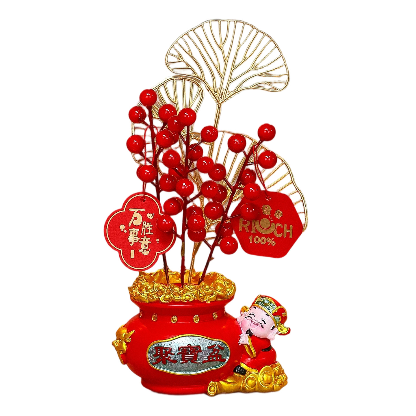 中式财神爷聚宝盆红果发财果发财树春节新年摆件客厅布置乔迁开业