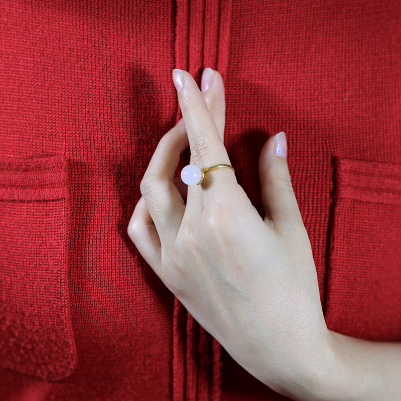 和合玉器和田玉羊脂白玉18k金镶玉玉珠戒指黄金镶钻简约女士礼物