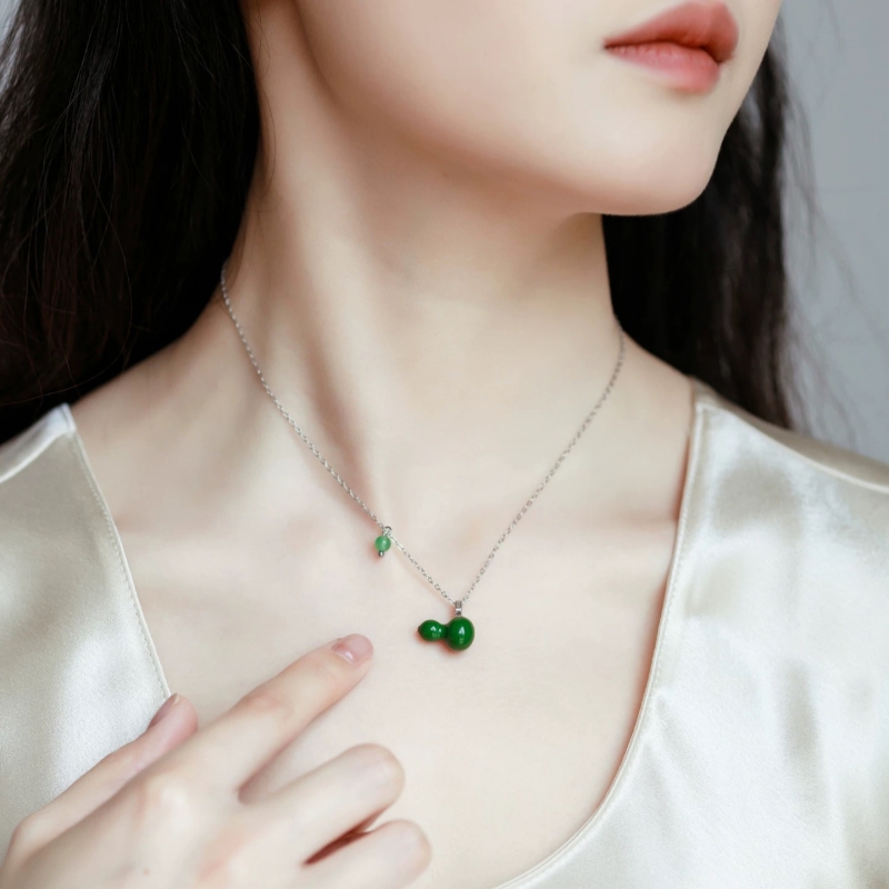 新中式葫芦项链小众中国风葫芦款锁骨链小众设计绿色吊坠项链