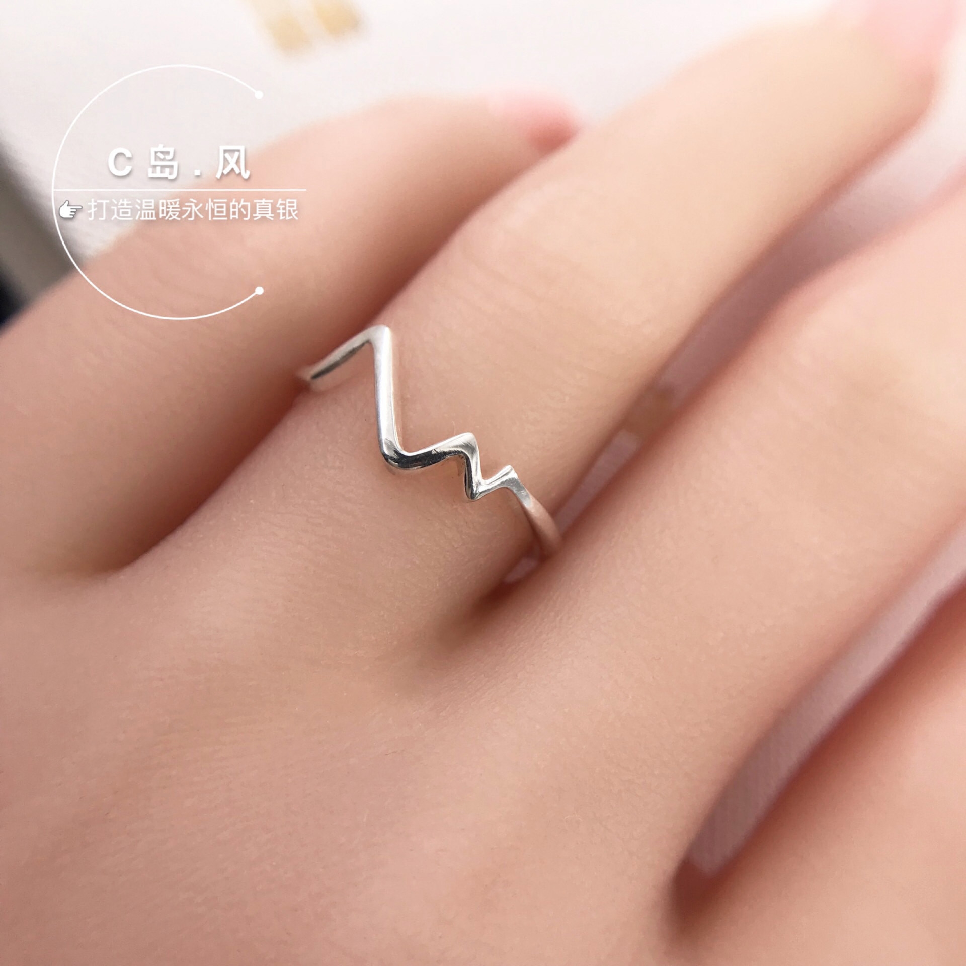 999纯银食指戒指男女心动心电图日韩潮人学生个性简约小众设计感