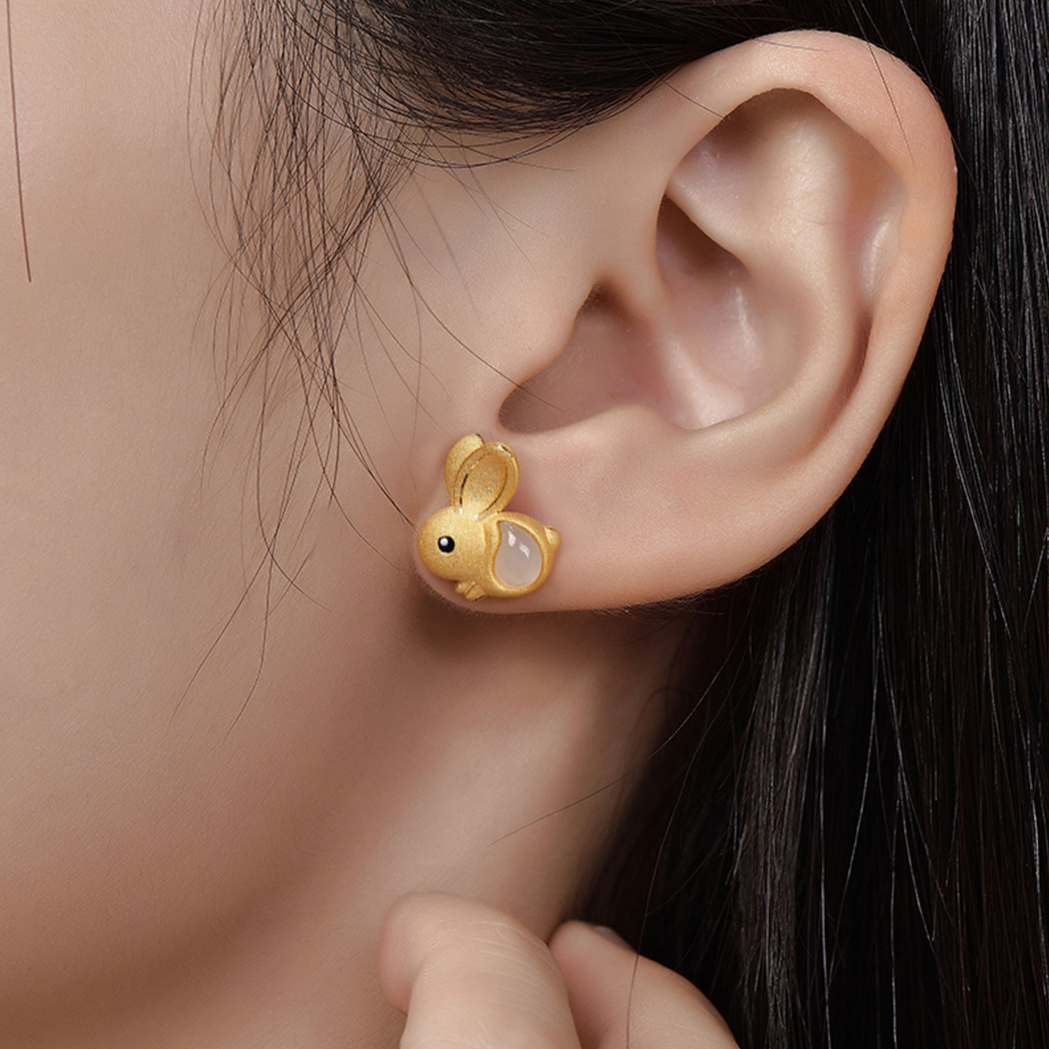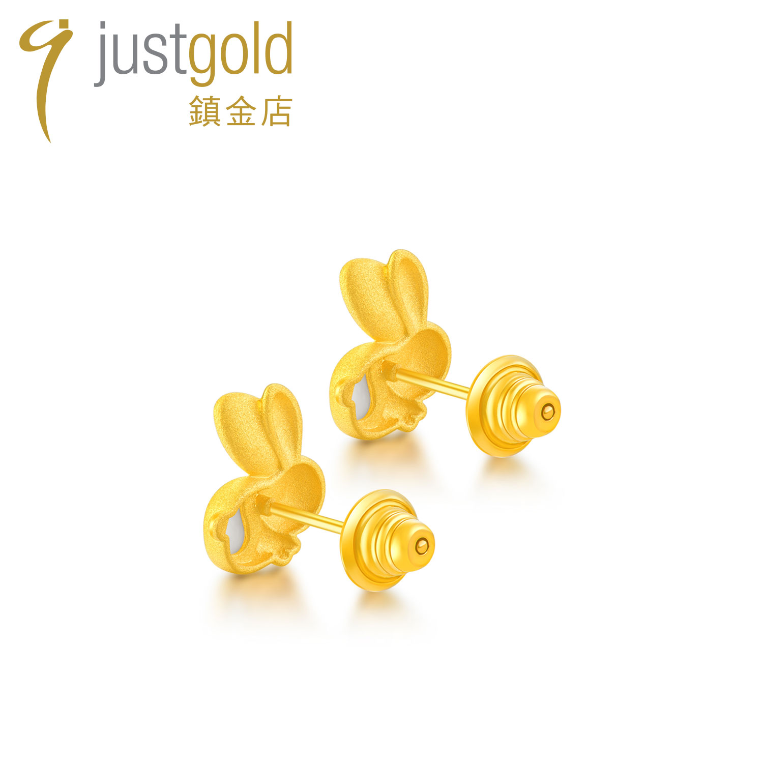 justgold镇金店玉灵兔黄金足金耳钉耳环(含耳堵)1328001Y