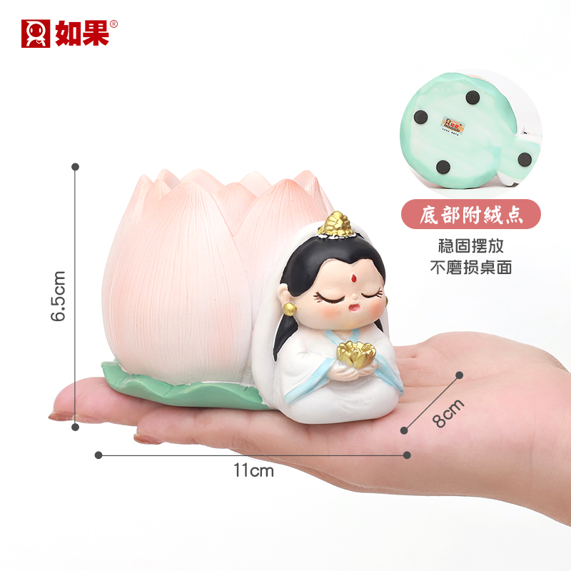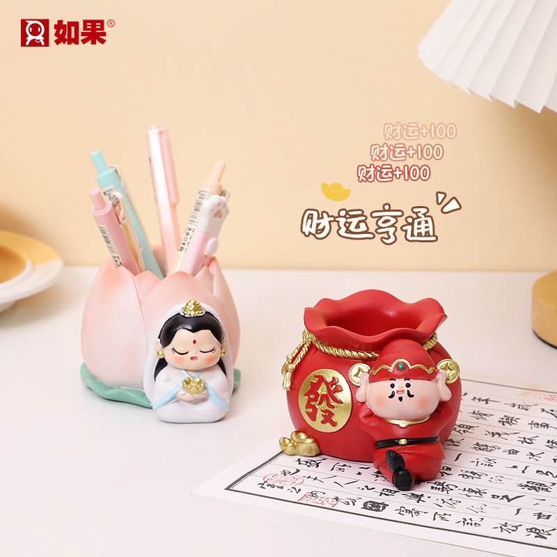 国潮欢喜神仙笔筒摆件办公室桌面好运莲莲观音收纳筒教师节礼物
