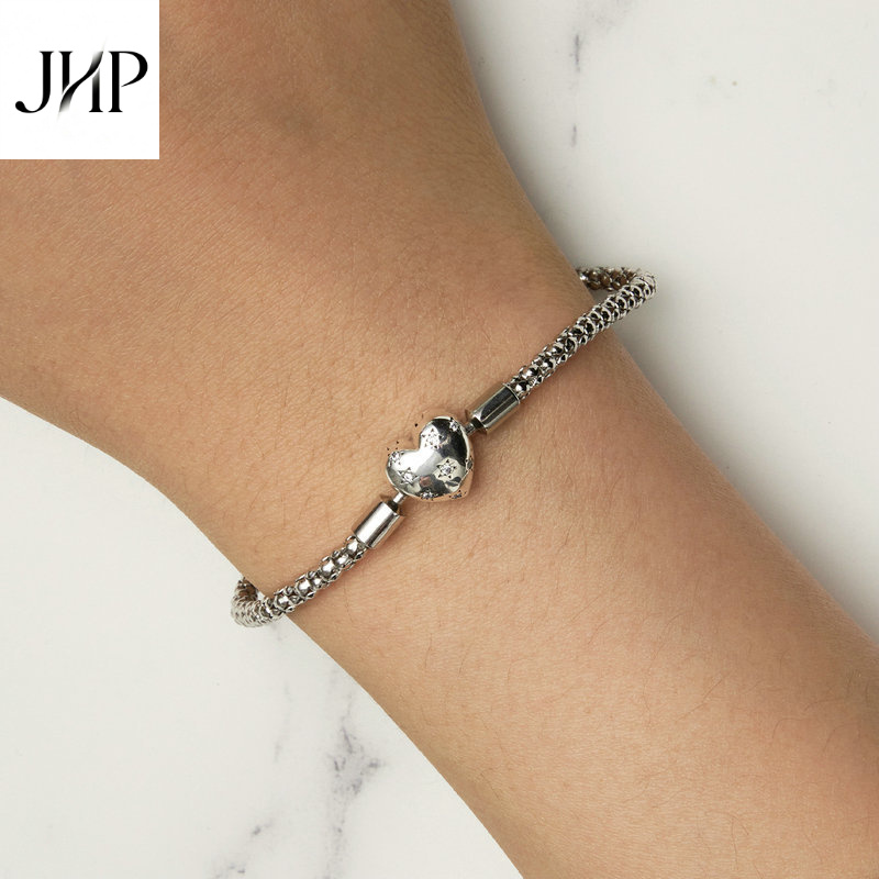 锦河畔新款s925纯银爱心基础手镯 经典百搭爱心diy手链可单带叠戴